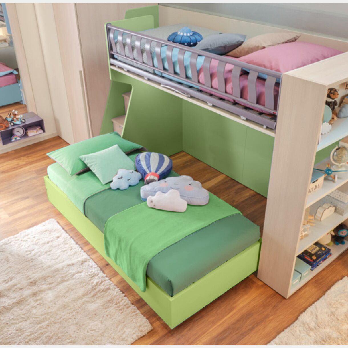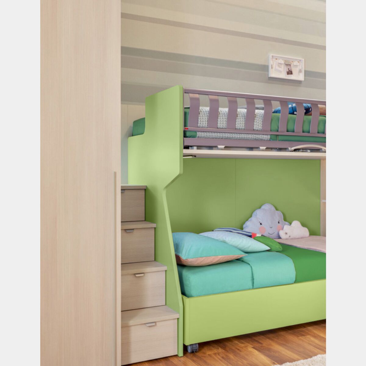Il letto presenta una rete a doghe dalle dimensioni di 80x200, la finitura Verde cedro, accesa e brillante, assicura alla cameretta un tocco moderno e luminoso. Grazie ad un ampio campionario disponibile è possibile personalizzare il letto per adattarlo al meglio ai propri gusti. Sono per questo disponibili finiture laccate neutre e colorate, oppure nobilitate.
