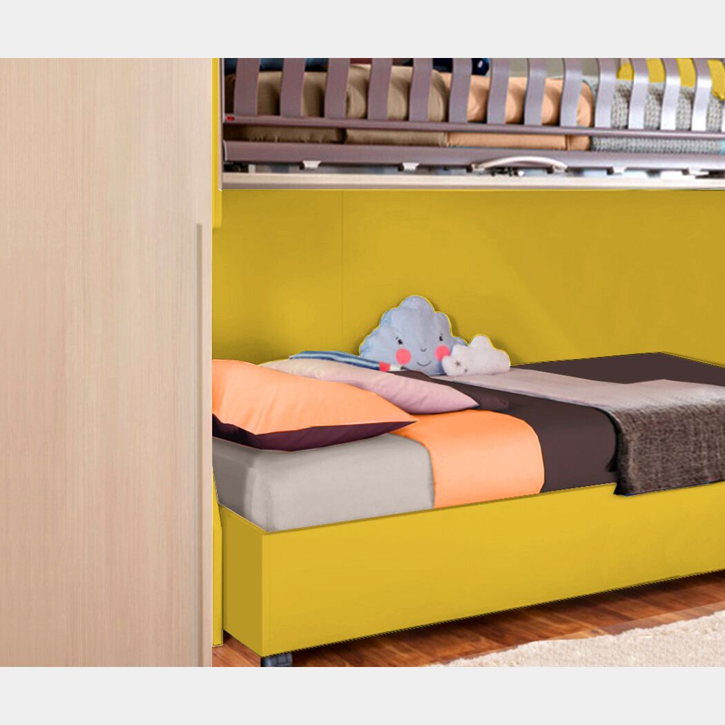Utilizzato anche per valorizzare la parete in cui è posto, grazie all'assenza della testata, assicura un importante impatto visivo che riesce a sorprendere e stupire tutti. L'accesa finitura Senape non passa inosservata: luminosa e frizzante illumina l'ambiente per renderlo accogliente e a misura di ragazzo; grazie ad un ampio campionario disponibile è possibile personalizzare il letto sommier optando per altre tinte colorate laccate, oppure finiture neutre.