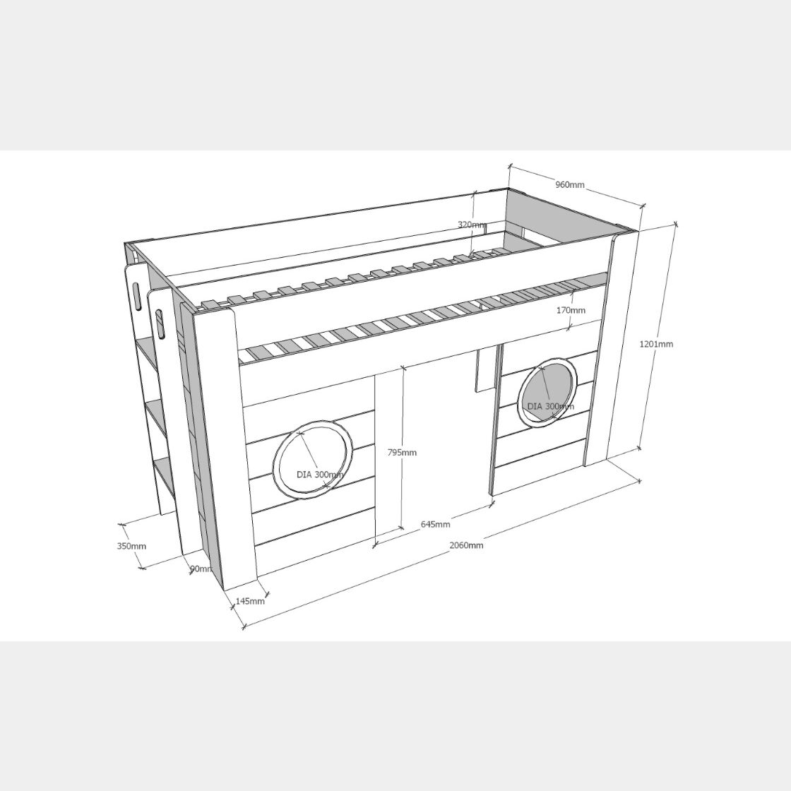 Letto soppalco per bambini, bianco laccato