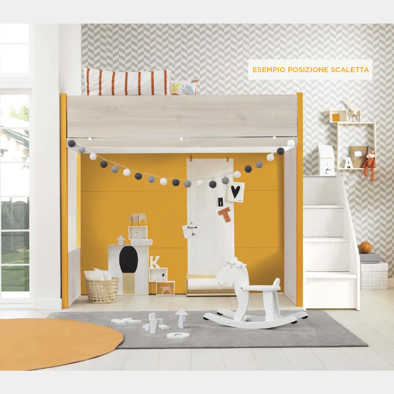 Le finiture proposte sono Ciliegio bianco per la struttura e Albicocca. Il delicato accostamento di queste tonalità assicura un letto a castello personale ed accattivante; grazie ad un'ampia gamma di finiture è possibile creare accostamenti o contrasti unici!