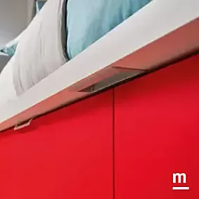 Per estrarre il letto si utilizza la maniglia a incasso sotto il pianale. La filosofia che orienta ogni progetto Moretti Compact prevede che ogni complemento d’arredo assolva più di una funzione.