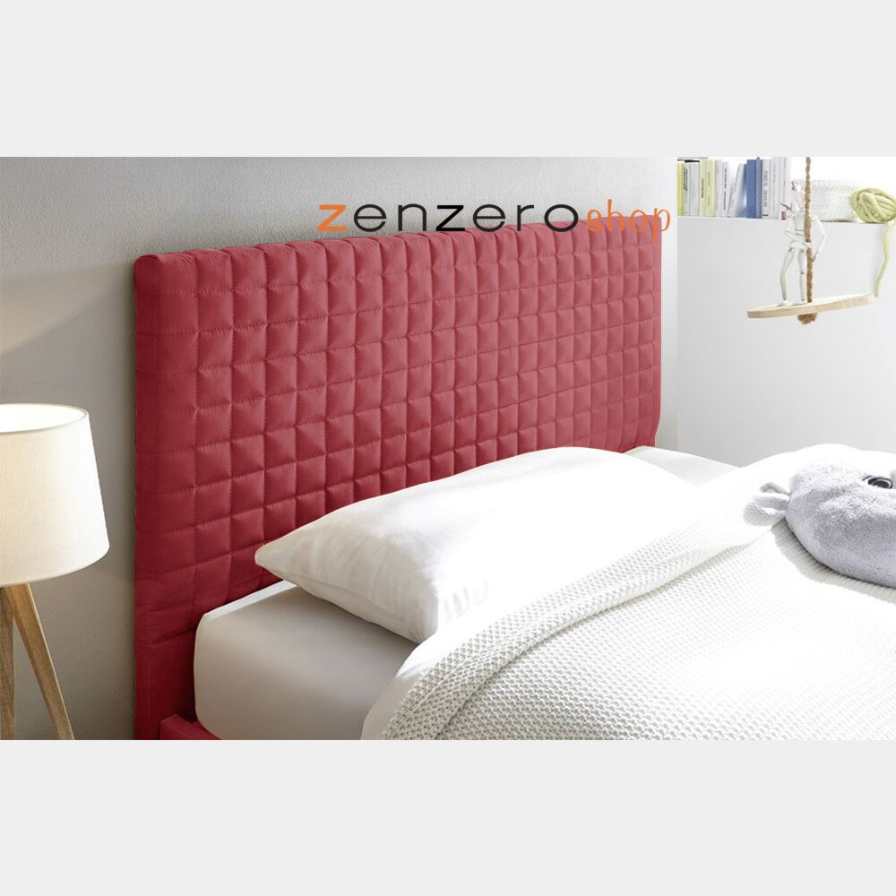 Letto square una piazza e mezza con testiera in tessuto imbottito colore rosso