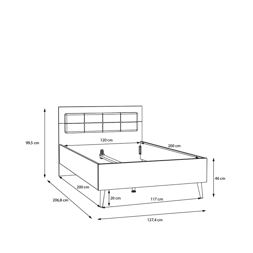 Lo stile nordico del letto emerge da dettagli caratteristici, come i piedini in legno massello e la calda finitura Rovere.