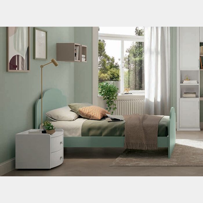 Testata e pediera del letto presentano una forma lavorata, che ricorda una nuvola. Ideale per bambini e ragazzi il letto 1 piazza e mezza diventa una soluzione ideale per riposare e arredare la cameretta.