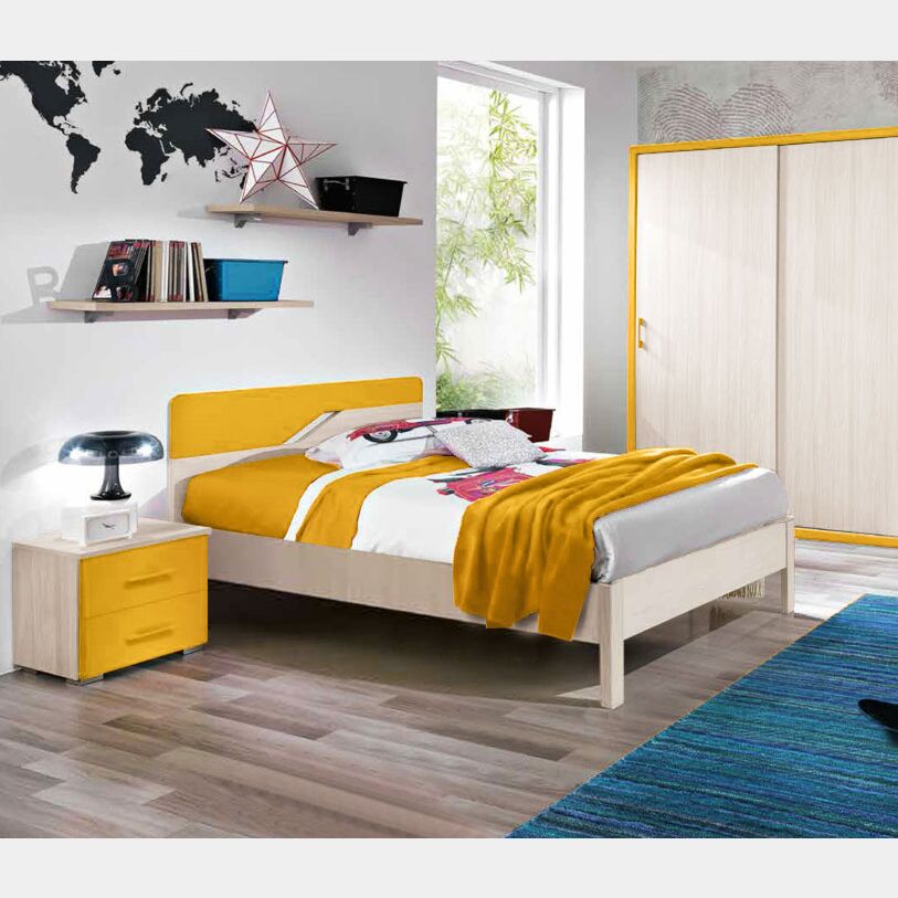 Letto una piazza e mezza Federica per camerette per ragazzi, finitura Olmo e Giallo