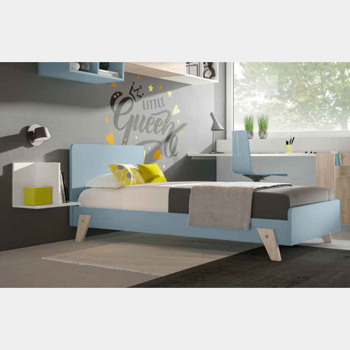 Letto una piazza e mezza Blu Avio e Olmo Natura. Letto ad una piazza e mezza POP (120x200). Moderno e di design il letto POP è disponibile nelle finiture Essenze e Colorati e i vari componenti possono essere scelti di diversi colori. Le finiture del letto in questo caso sono 2: Blu Avio per tutta la struttua e Olmo Natura per le gambe.