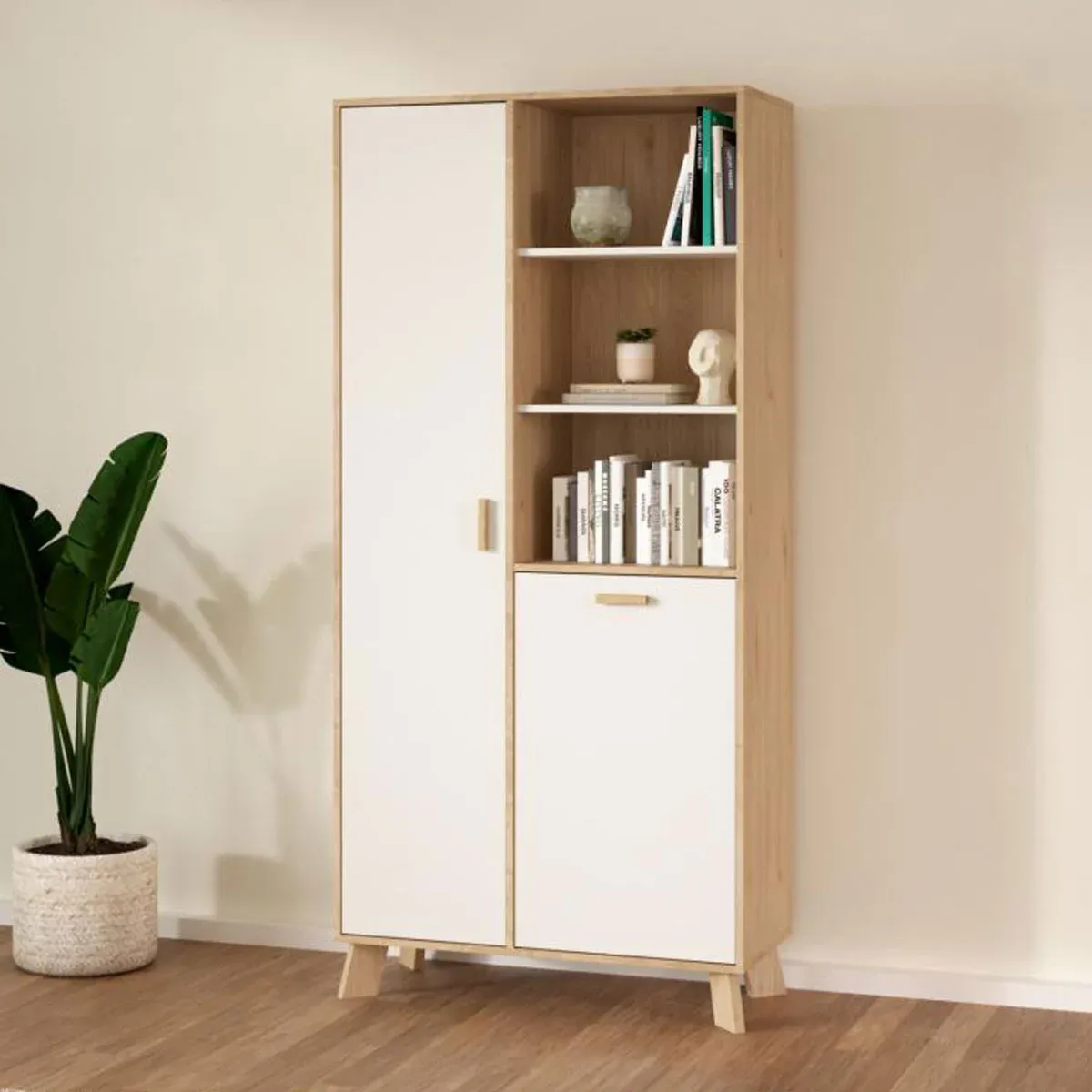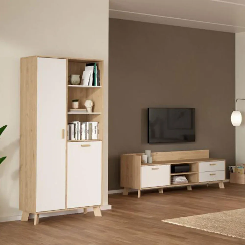 Libreria a due ante battenti in finitura Rovere e Bianco. Della stessa finitura trovate le madie, librerie e molto altro!