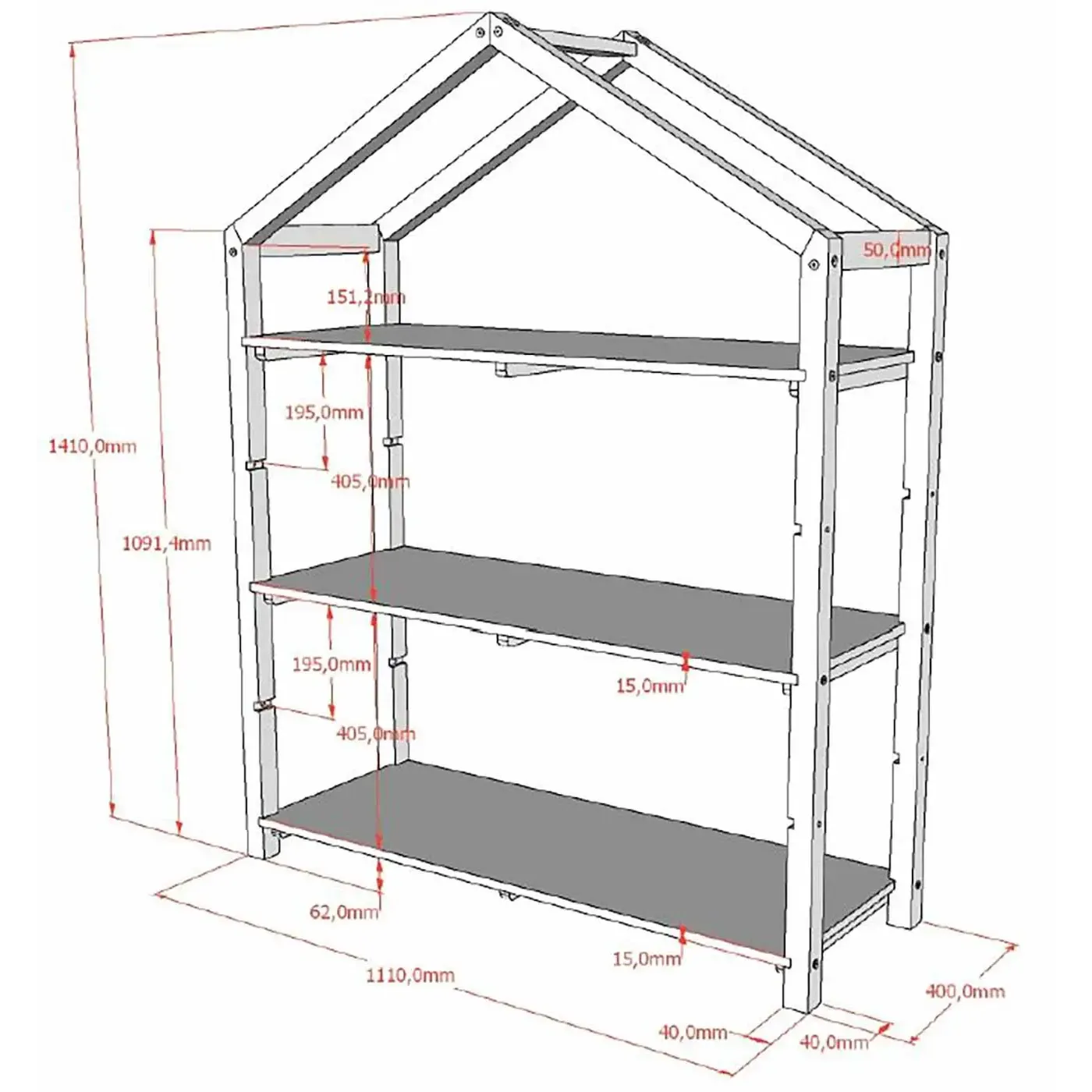 Libreria a forma di casetta, 111x141x40 h cm, color Bianco