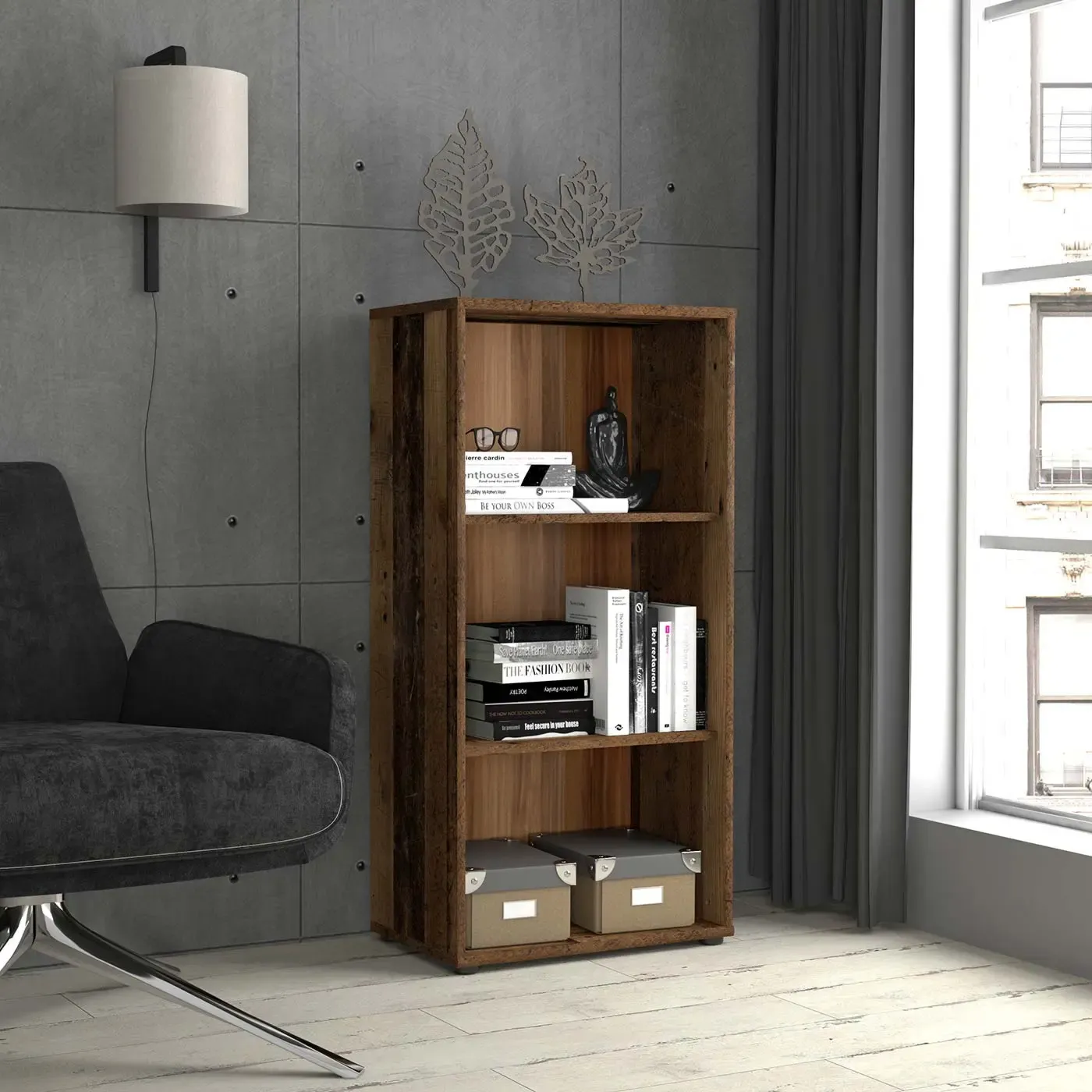 Libreria a terra, 54x112x34,8 h cm, Rovere invecchiato
