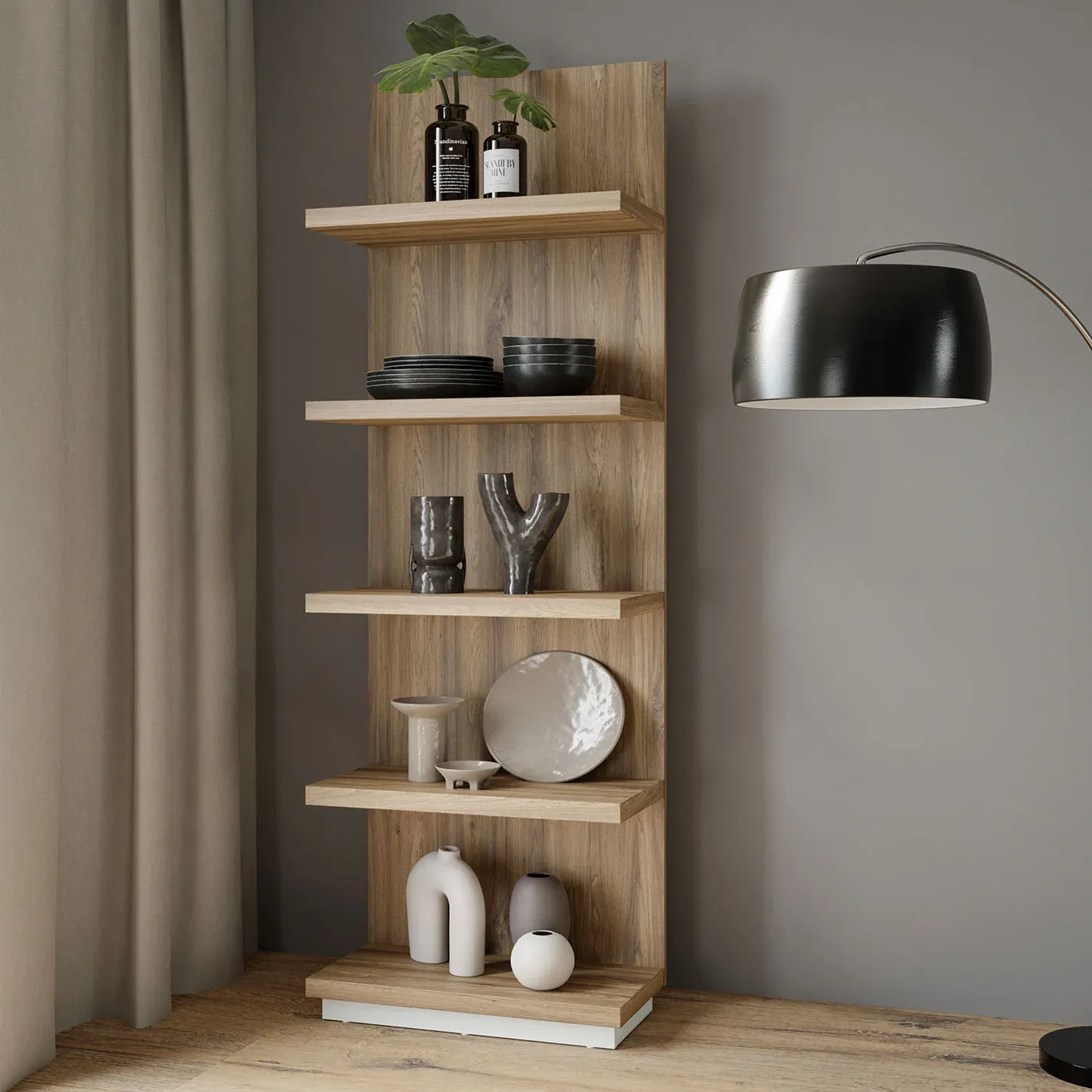 Questa alta libreria a terra si distingue per la slanciatezza della sua fisionomia e per l'elevata capacità dei suoi 5 ripiani contenitori, un palco perfetto per mettere in mostra i migliori pezzi decorativi e di design che si possiedono.