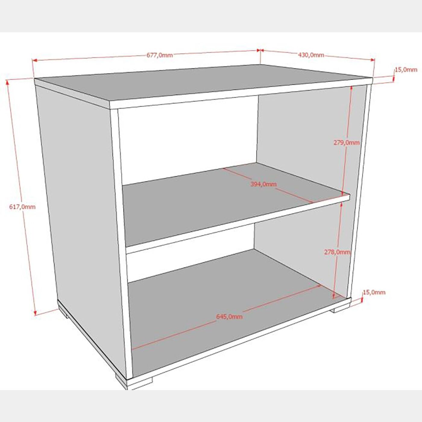 Una libreria bassa a terra dall'ampia capacità contenitiva, ideale per arredare una camera da letto, magari abbinata a quest'ultimo, o uno studio. Il suo ripiano divide a metà lo spazio interno del prodotto garantendo due larghi incavi dove stipare e tenere non soltanto libri, bensì oggetti di ogni sorta.