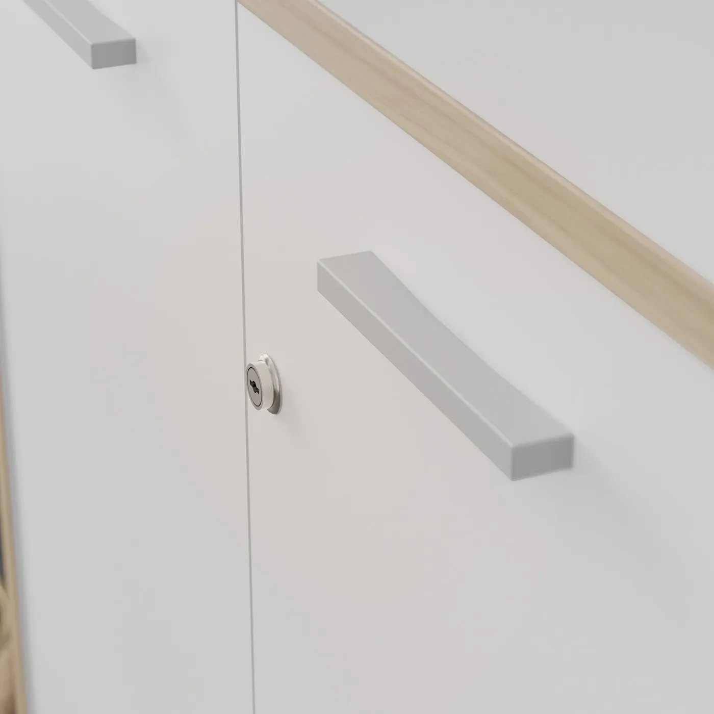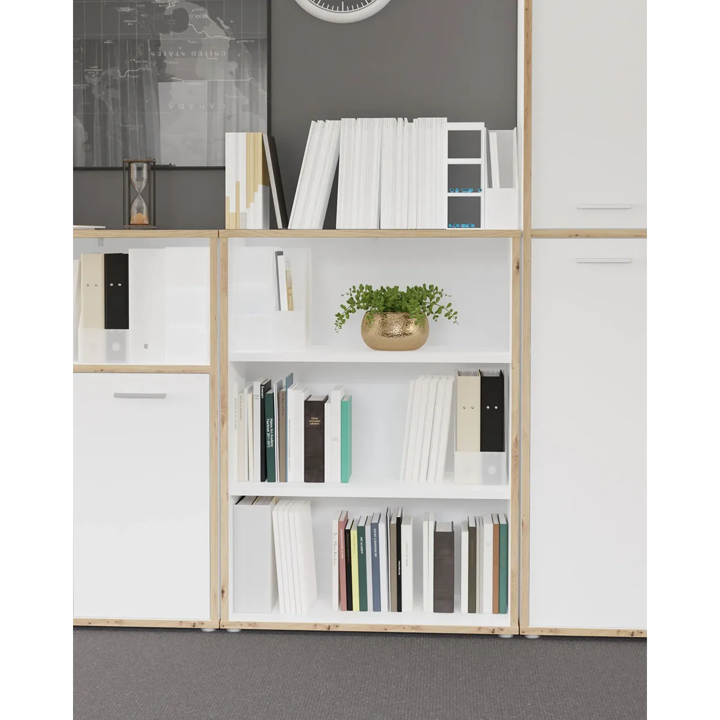 Questa libreria, concepita per agevolare il lavoro all'interno dell'ufficio, può risultare utile anche altrove all'interno della propria abitazione in virtù della forte adattabilità del suo stile, semplice, lineare ma comunque seducente, e della colorazione unica nel suo genere, costituita da Bianco e Rovere artisan. Da non trascurare poi la possibilità di ricevere 2 ante provviste di apposita serratura per proteggere al meglio il contenuto del mobile.