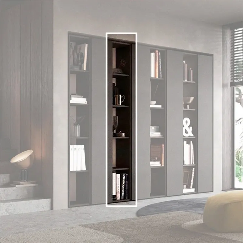La finitura proposta, Lava, può essere sostituita con altre tinte, disponibili a campionario, per personalizzare al meglio la librerie e adattarla al proprio ambiente.