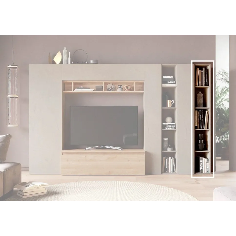 La libreria è proposta in finitura Argilla, elegante tinta di grande tendenza che dona carattere e stile all'ambiente. Sono disponibili altre finiture, visionabili a campionario.