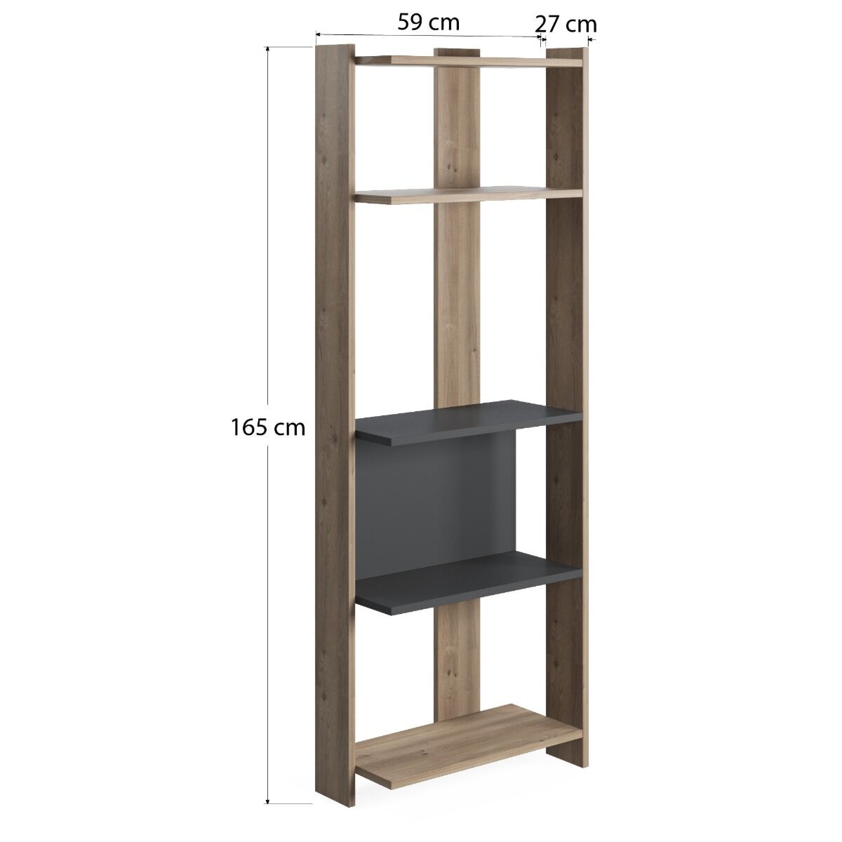Libreria Ankara 5 ripiani in finitura Rovere e Antracite