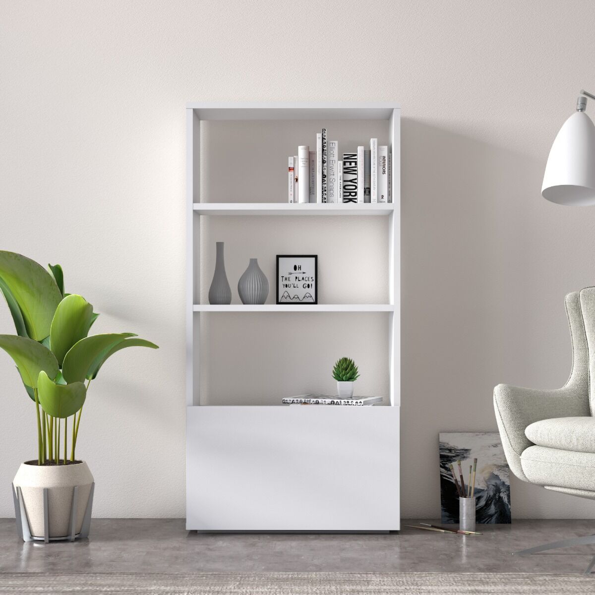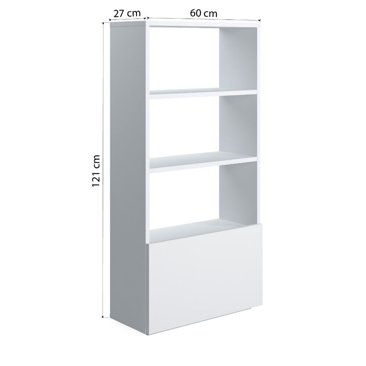 La libreria si adatta a diversi ambienti come una camera da letto, una cameretta, un ufficio ma anche un corridoio o uno spazio ristretto. Le sue dimensioni infatti sono pensate per rendere la libreria adatta a diversi contesti. Dotata di 2 ripiani e una ribalta inferiore la libreria bianca risulta il compromesso perfetto tra piano di appoggio e ingombro nell'ambiente.