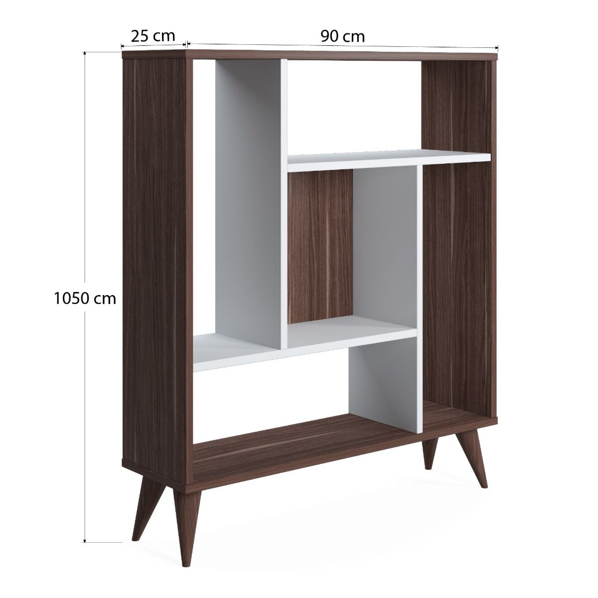 La libreria è nella finitura Noce e bianco, l'alto colore disponibile è il Rovere.