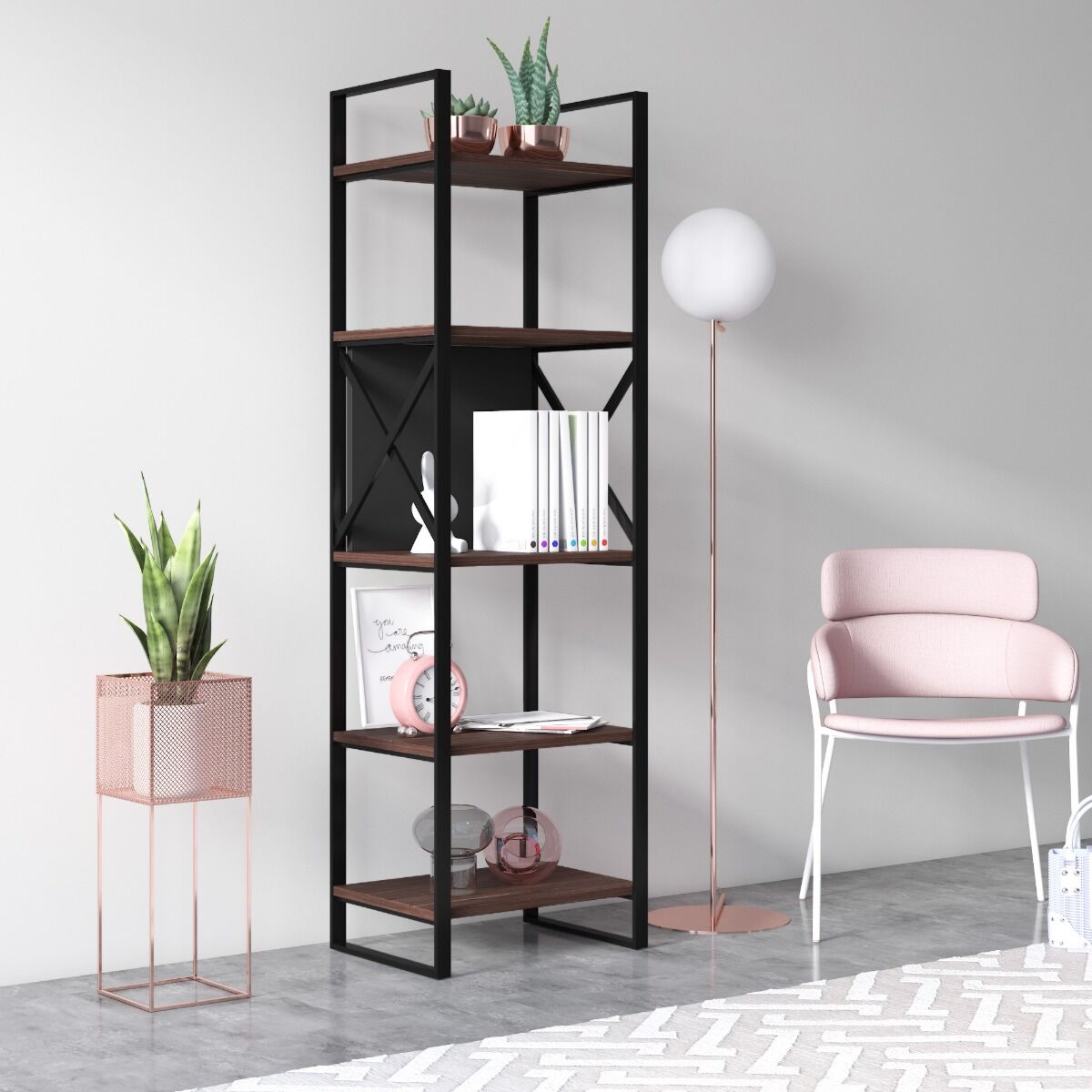 Libreria Ankara stretta noce e antracite