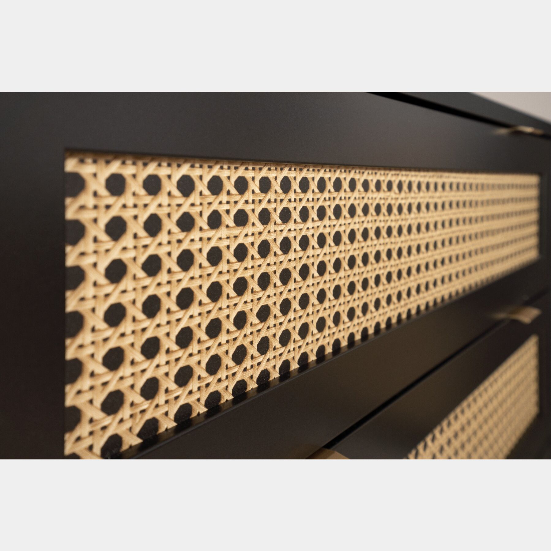 Libreria moderna Arendal in finitura Nero opaco con pannello effetto intarsiato Oro.