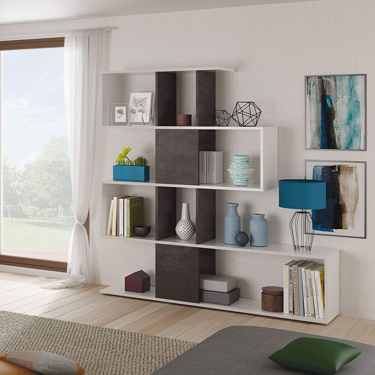 Disponibile in diversi colori, è una pratica soluzione per arredare qualsiasi stanza, come ad esempio un ufficio, un living o una zona di passaggio. Le mensole e i ripiani a vista ti consentiranno di organizzare i tuoi libri e i tuoi cd alla perfezione.