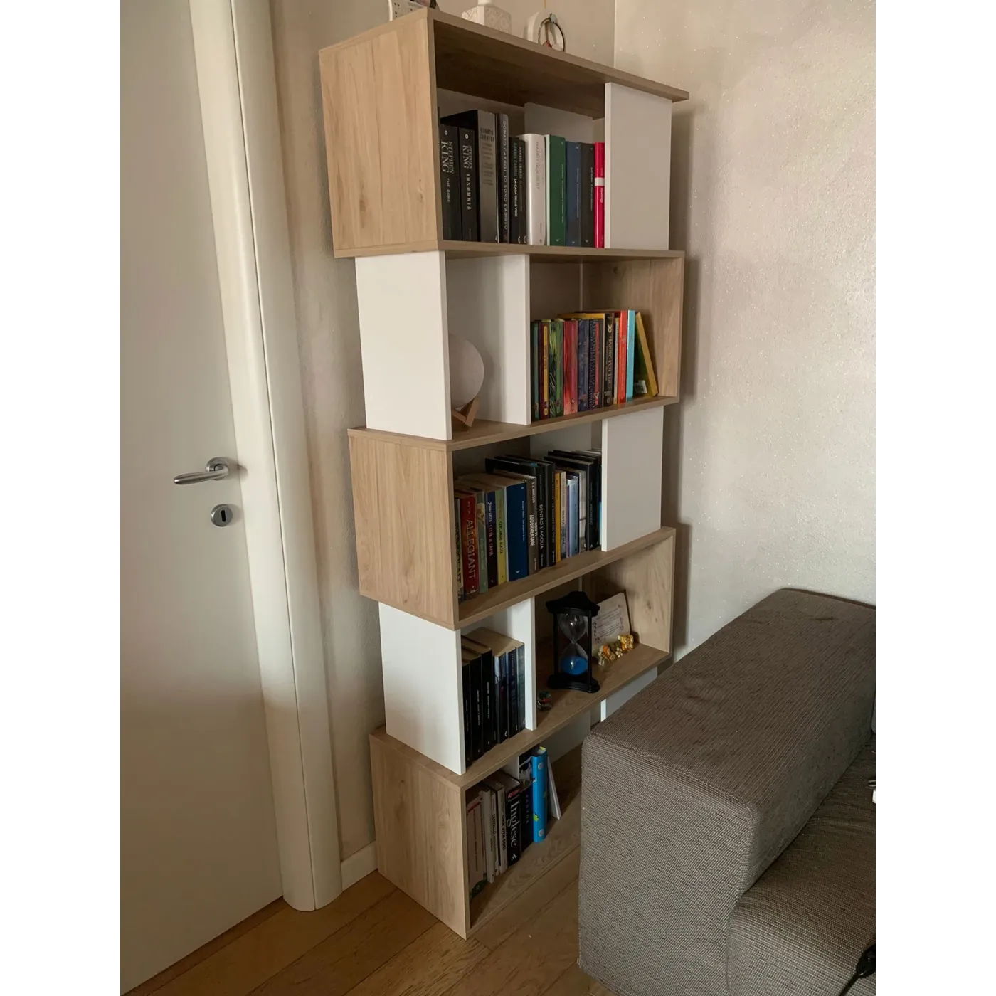 Perfetta per tutti gli ambienti della casa la libreria assicura uno stile moderno ed elegante, grazie alla finitura bianca e rovere ben si adatta a tinte materiche color legno e tinte unite neutre.