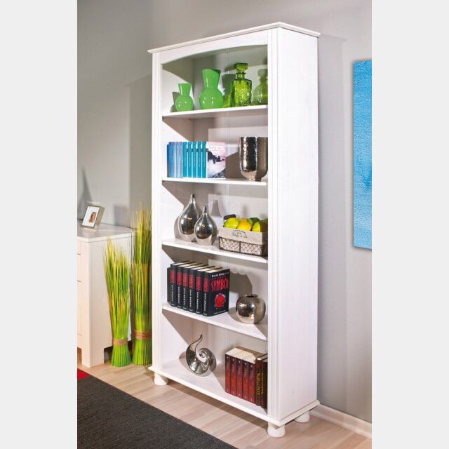 Libreria decorata moderna con struttura bianca a cinque vani. Con i frontali delle pareti e lo schienale decorati, questa libreria darà un vero tocco di classe al vostro soggiorno. E' costituita da cinque vani sopra cui potrete disporre ciò che vorrete. E' inoltre dotata di quattro piedi circolari bianchi in tinta.