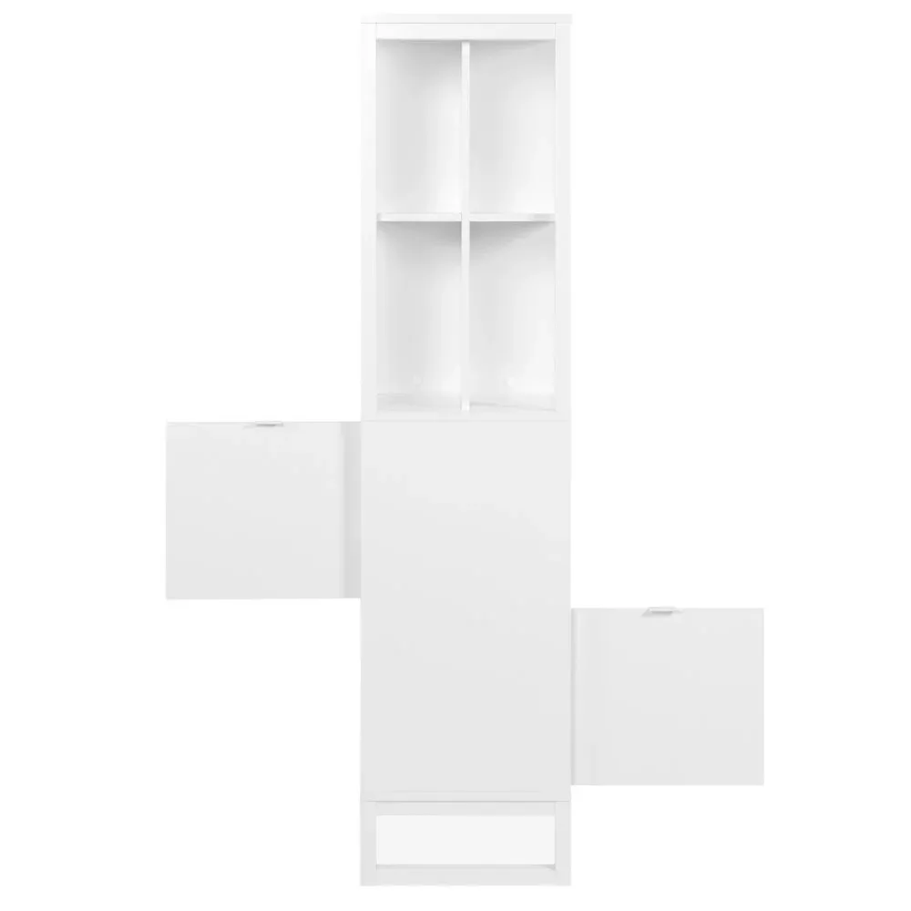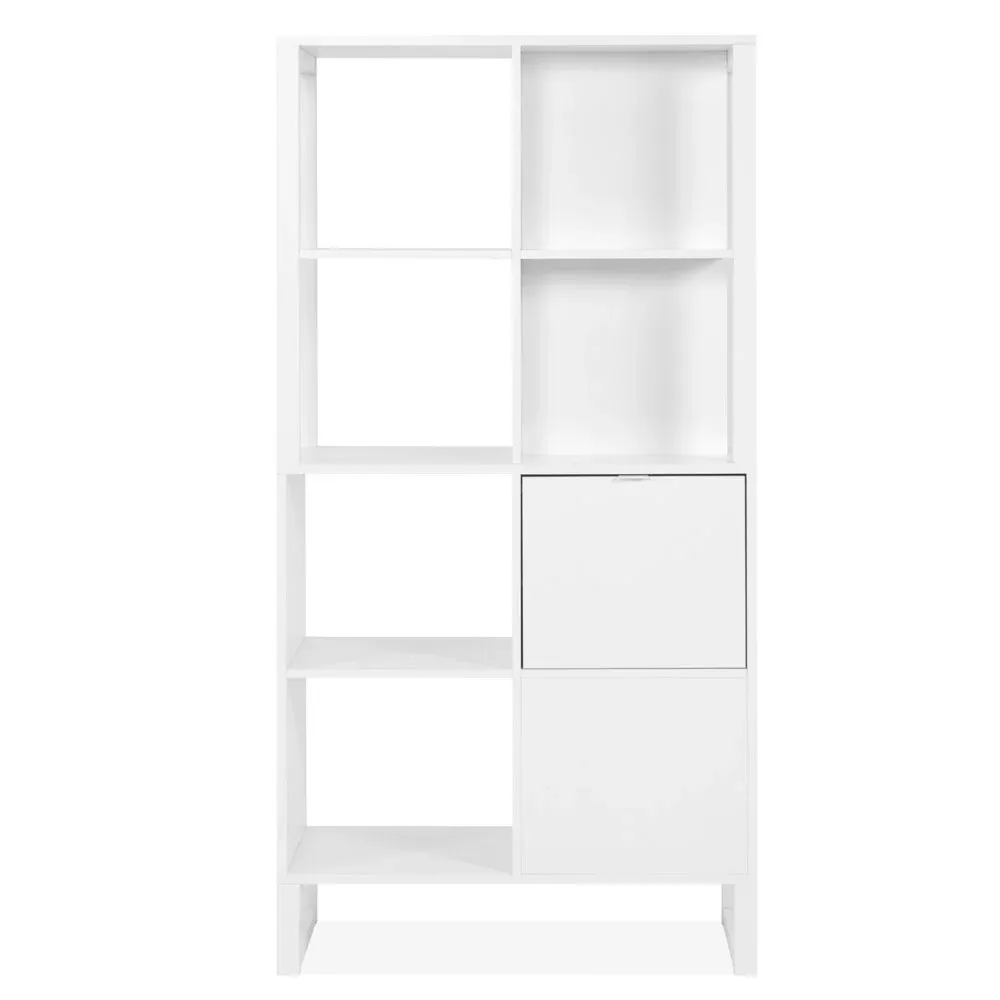 Ecco a voi una bellissima libreria in fiitura Bianco da Zenzeroshop! E' costituita da quattro vani a giorno aperti sia nella parte frontale che in quella posteriore. Inoltre presenta due vani chiusi da un pannello nel retro ed è anche costituita da due vani chiusi frontalmente da due ante.