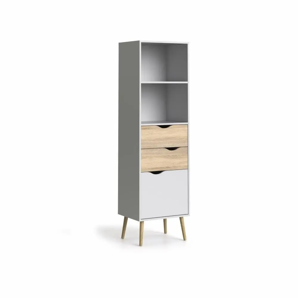 Libreria colore Bianco e Grigio con due cassetti, due ripiani e un'anta