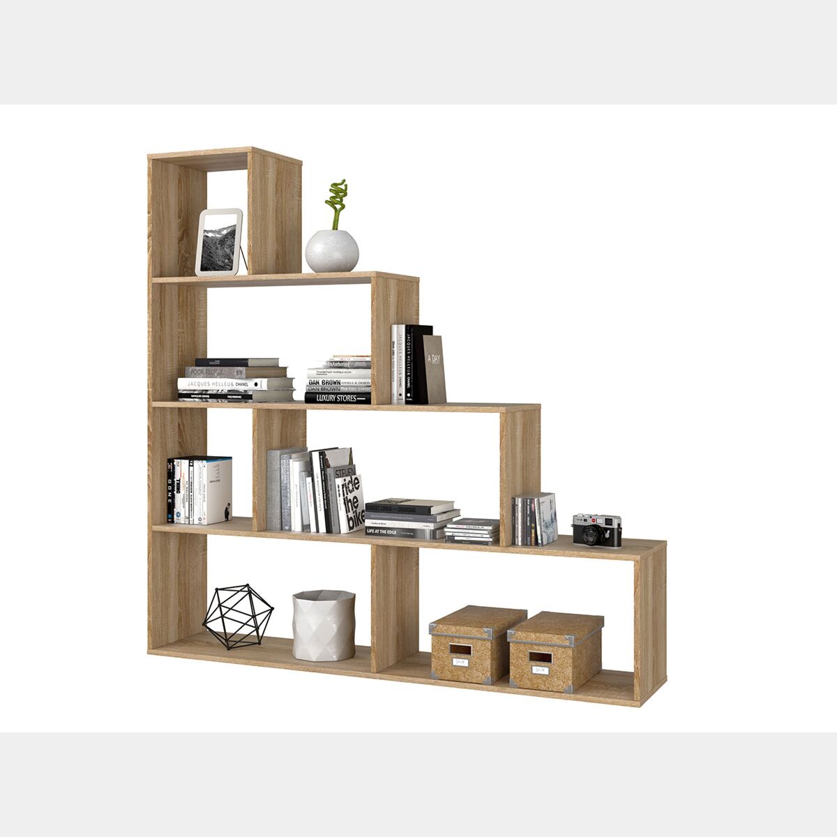 Libreria divisoria bifacciale, design moderno, finitura Rovere