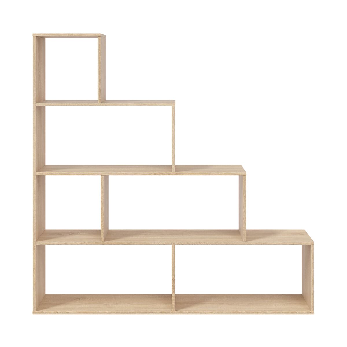 Come la libreria moderna proposta nella finitura Rovere, calda tonalità effetto legno che consente un perfetto inserimento con un arredamento minimal o industry. La libreria è rifinita su due lati per poter suddividere gli ambienti con leggerezza, senza creare un effetto "pieno".