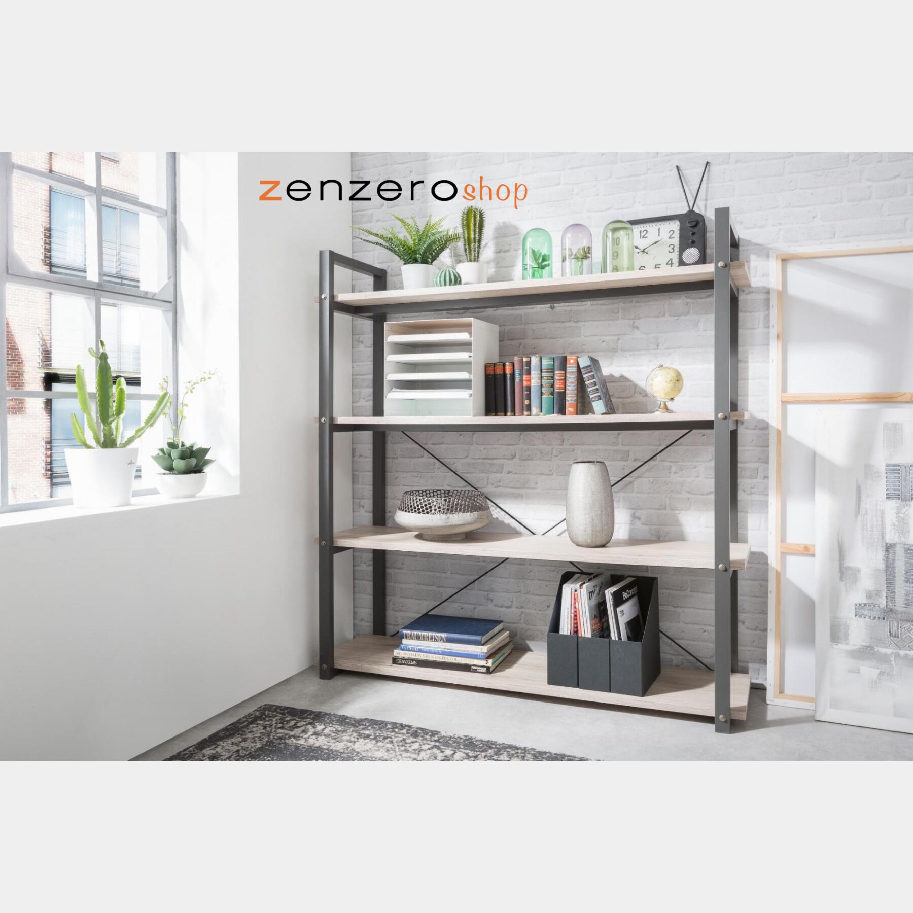 Libreria dallo stile industry con 4 ripiani, finituraQuercia
