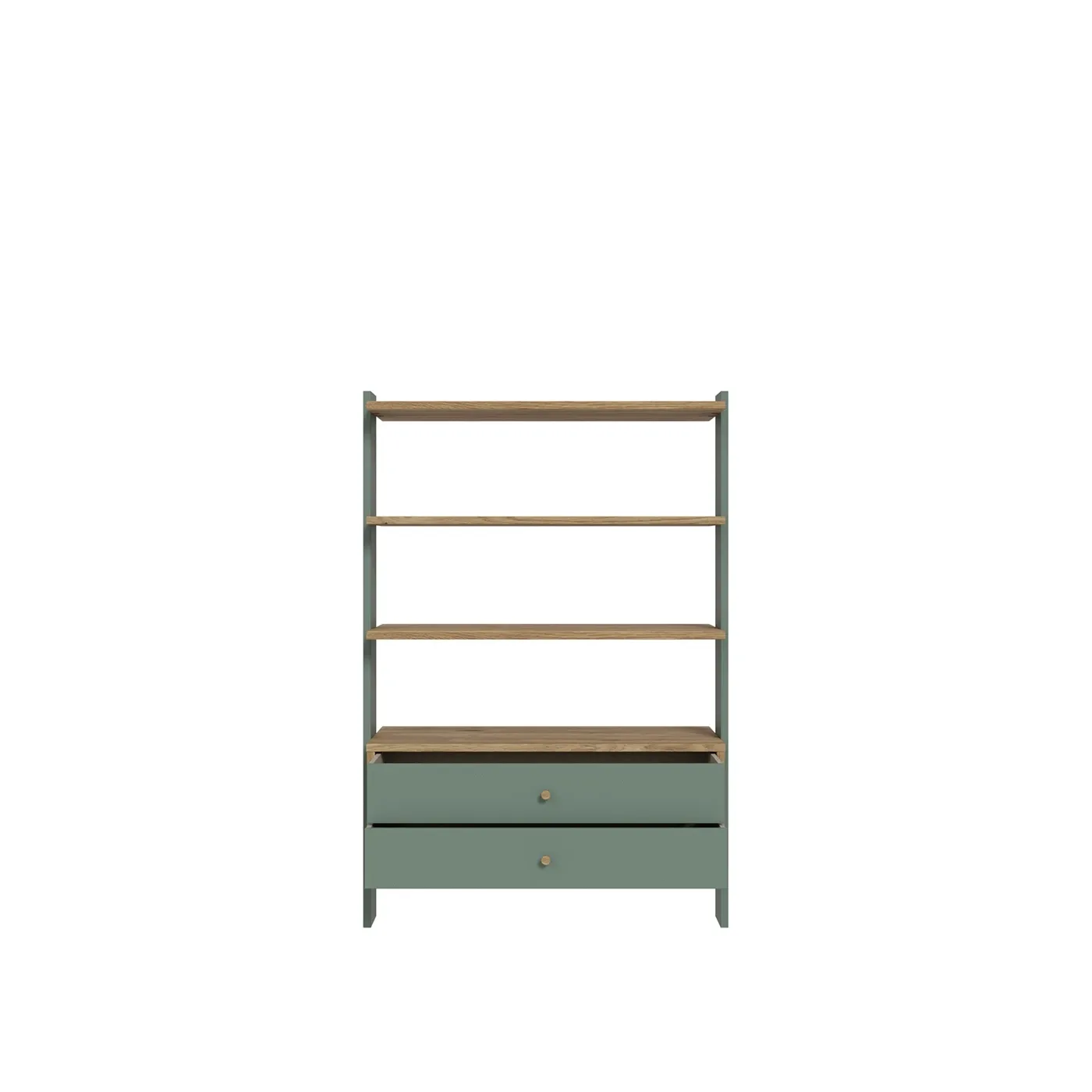Questa libreria a terra si propone come valido candidato per la gestione degli spazi in ogni camera in cui venga collocata. Graziosa ed economica, stupisce alla vista grazie al binomio di Rovere e Agave, non rinunciando alla praticità grazie ai 3 ripiani e ai 2 cassettoni di cui dispone.