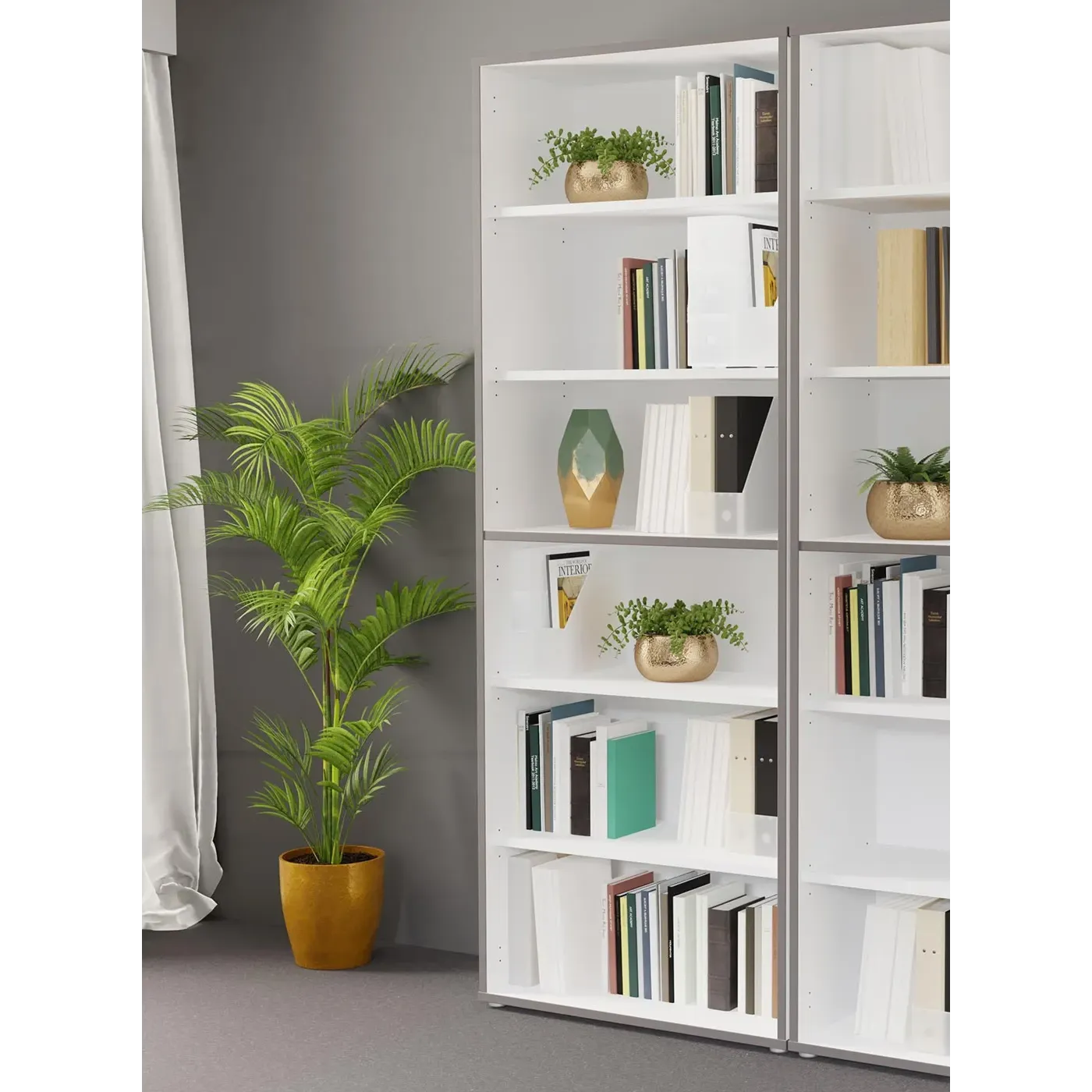 Libreria larga 5 ripiani, 85x227x42 h cm, Bianco e Grigio scuro