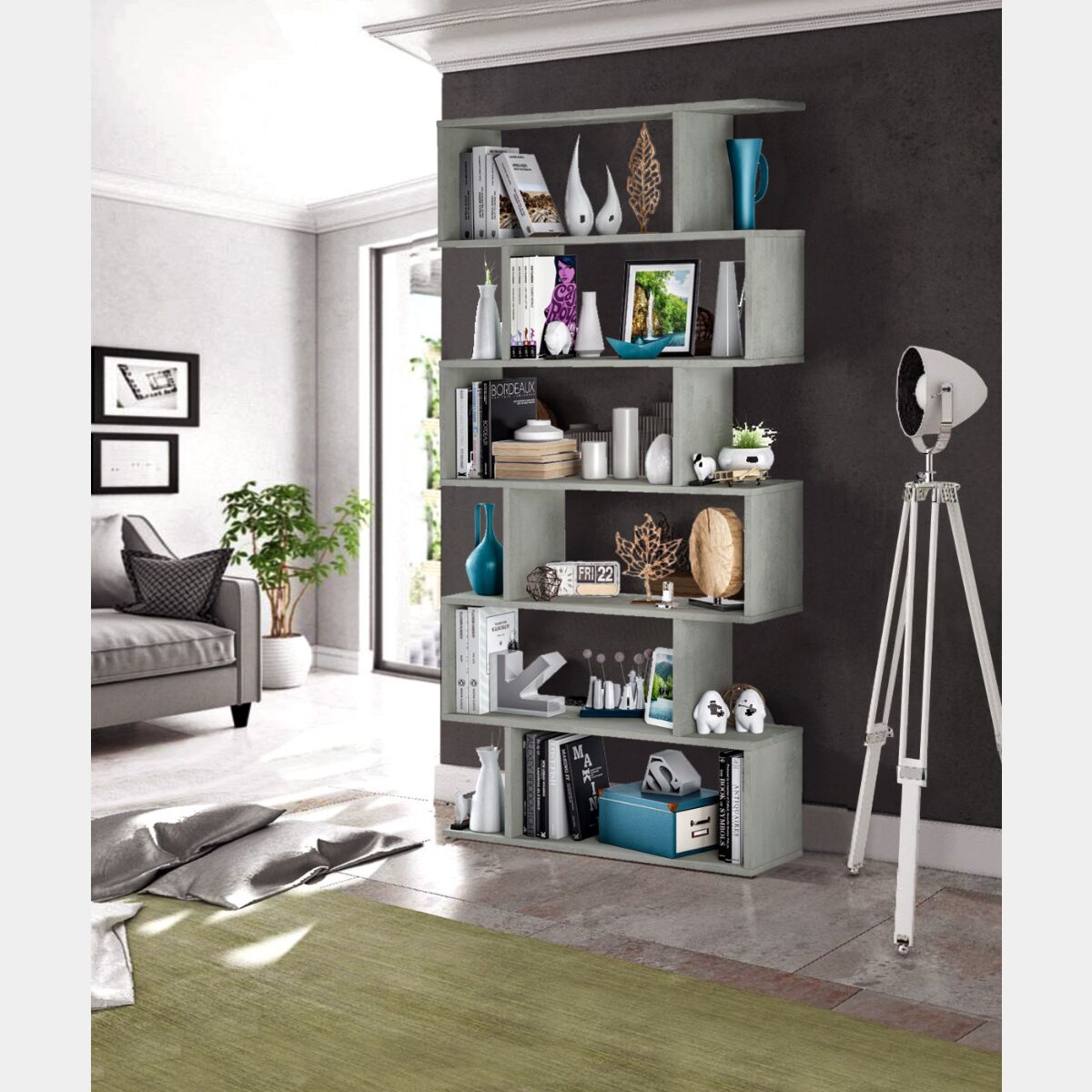Libreria in finitura Cemento con di 6 ripiani