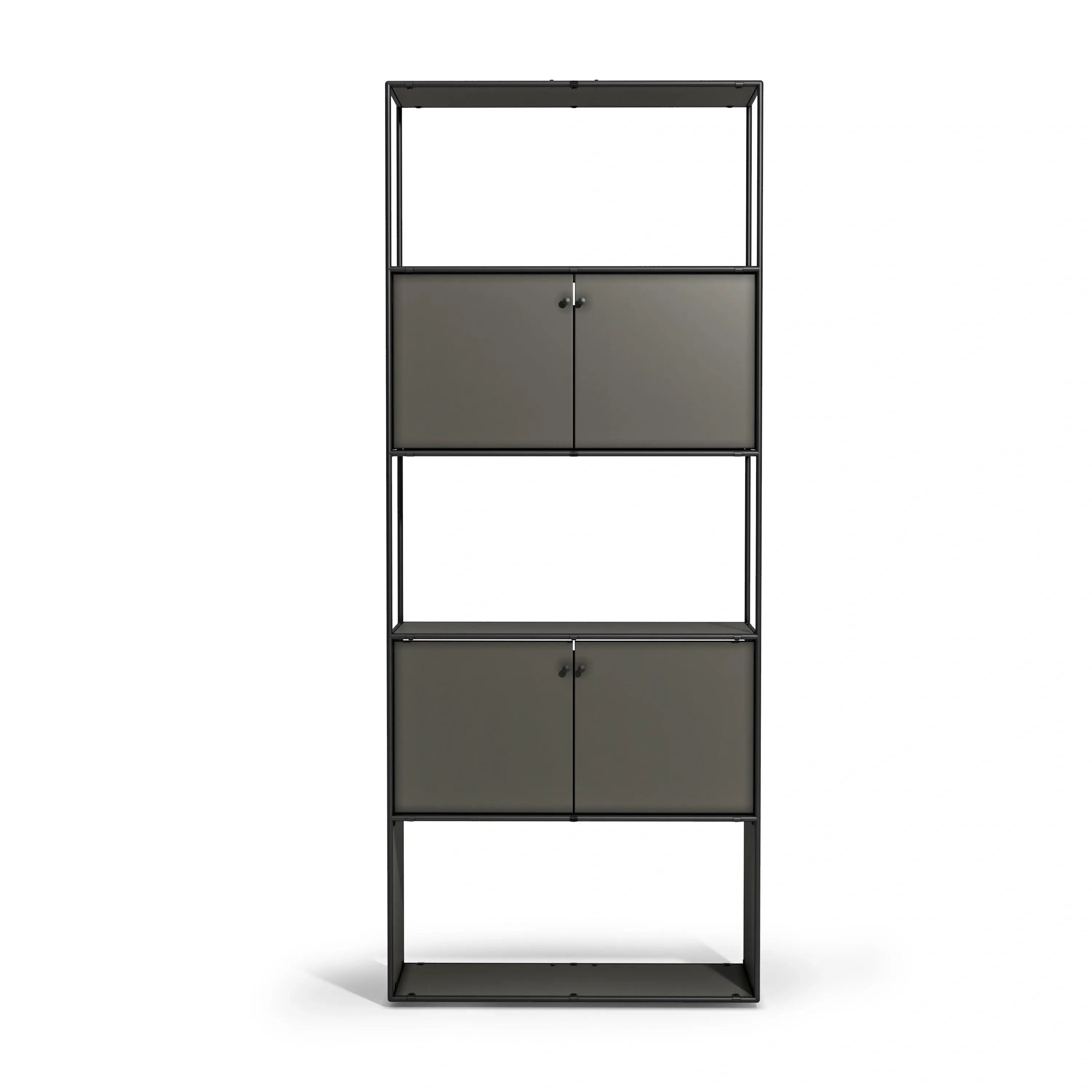 Libreria moderna larghezza 80 cm colore Grigio laccato costituita da ripiani funzionali e due vani chiusi con ante per archiviare i propri documenti, libri o quaderni in un luogo ben organizzato.