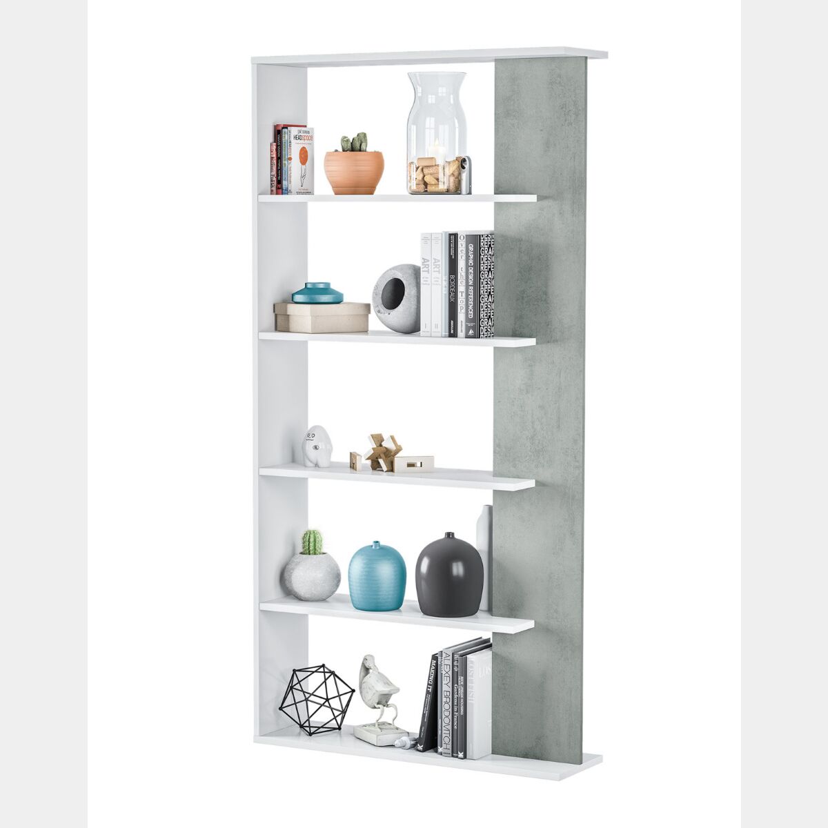 Libreria di design, finitura bianco e cemento con 5 ripiani