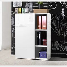 Libreria di design in finitura bianco lucido la soluzione ideale per arredare il tuo ufficio o la tua stanza. Questa libreria si adatta perfettamente a tutti gli ambienti grazie alla finitura in Bianco lucido.
