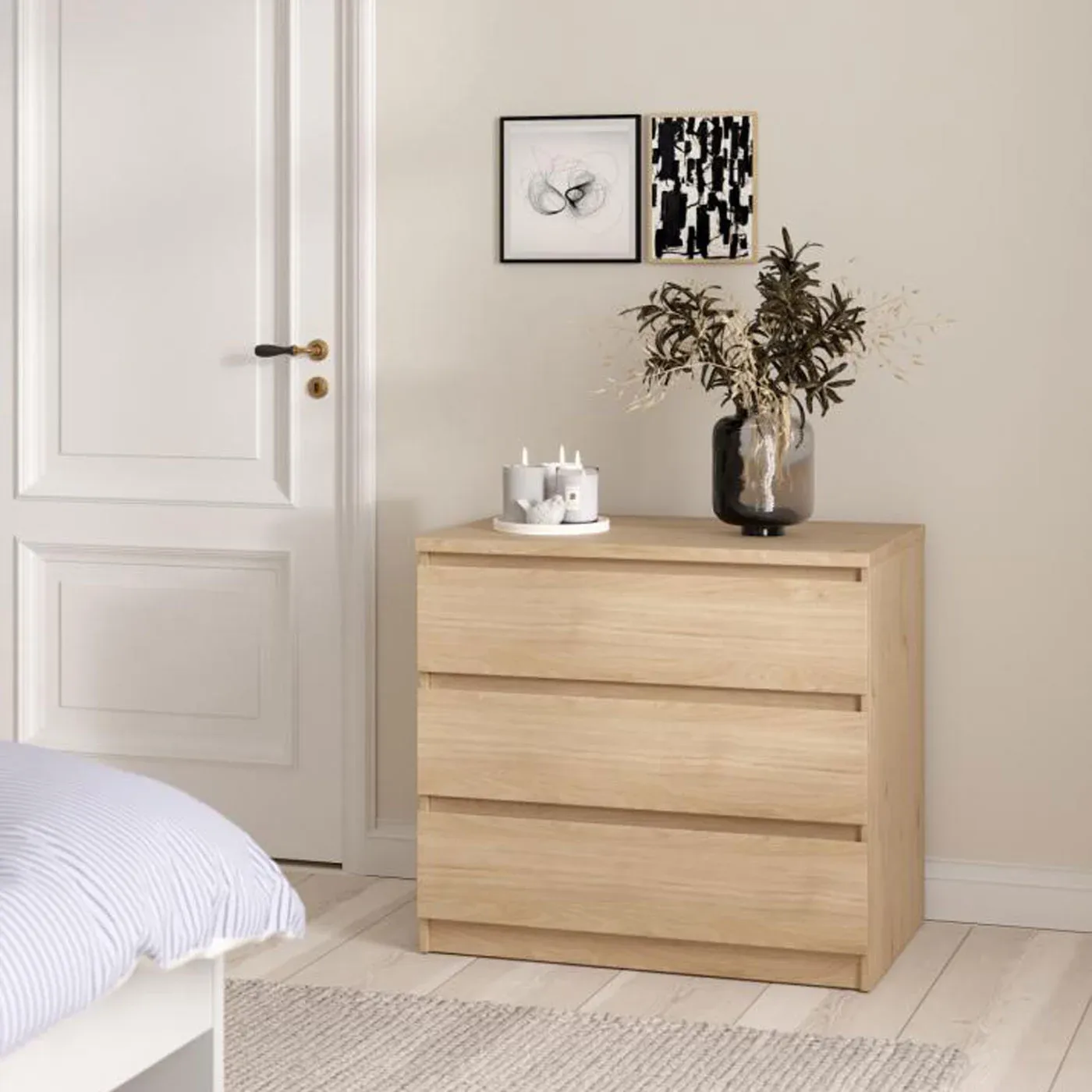 Cassettiera colore Rovere con tre cassetti. E' disponibile anche in versione Nero opaco, Calcestruzzo e Bianco lucido, Bianco lucido