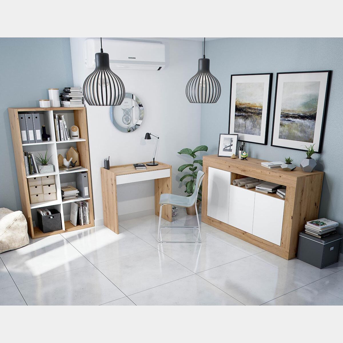 La libreria moderna nasce da una grande richiesta di avere un mobile pratico, funzionale e versatile, che possa adattarsi a più ambienti nella casa. La calda finitura in Rovere nodi incontra il Bianco opaco creando un piacevole contrasto che ne sottolinea l'estetica.