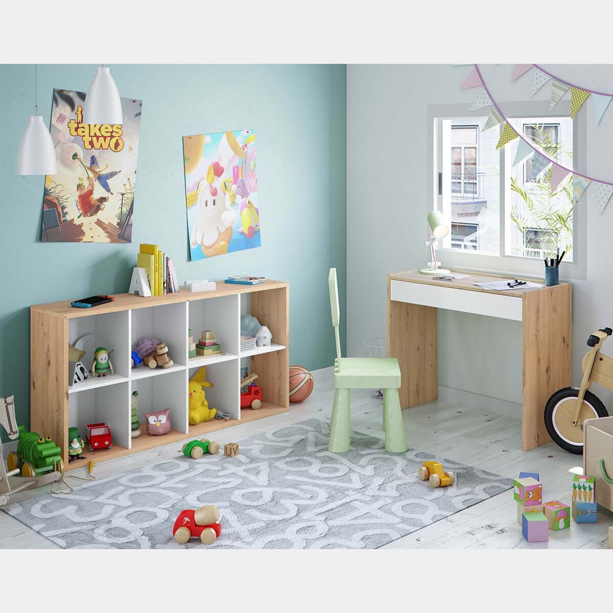 La libreria puà essere montata sia verticalmente che orizzontalmente, a seconda delle proprie esigenze. Per creare una composizione completa è possibile richiedere anche la scrivania, disponibile con cassetto, con due cassetti ed un'anta oppure con un'anta e la madia multiuso, sempre nelle stesse finiture.