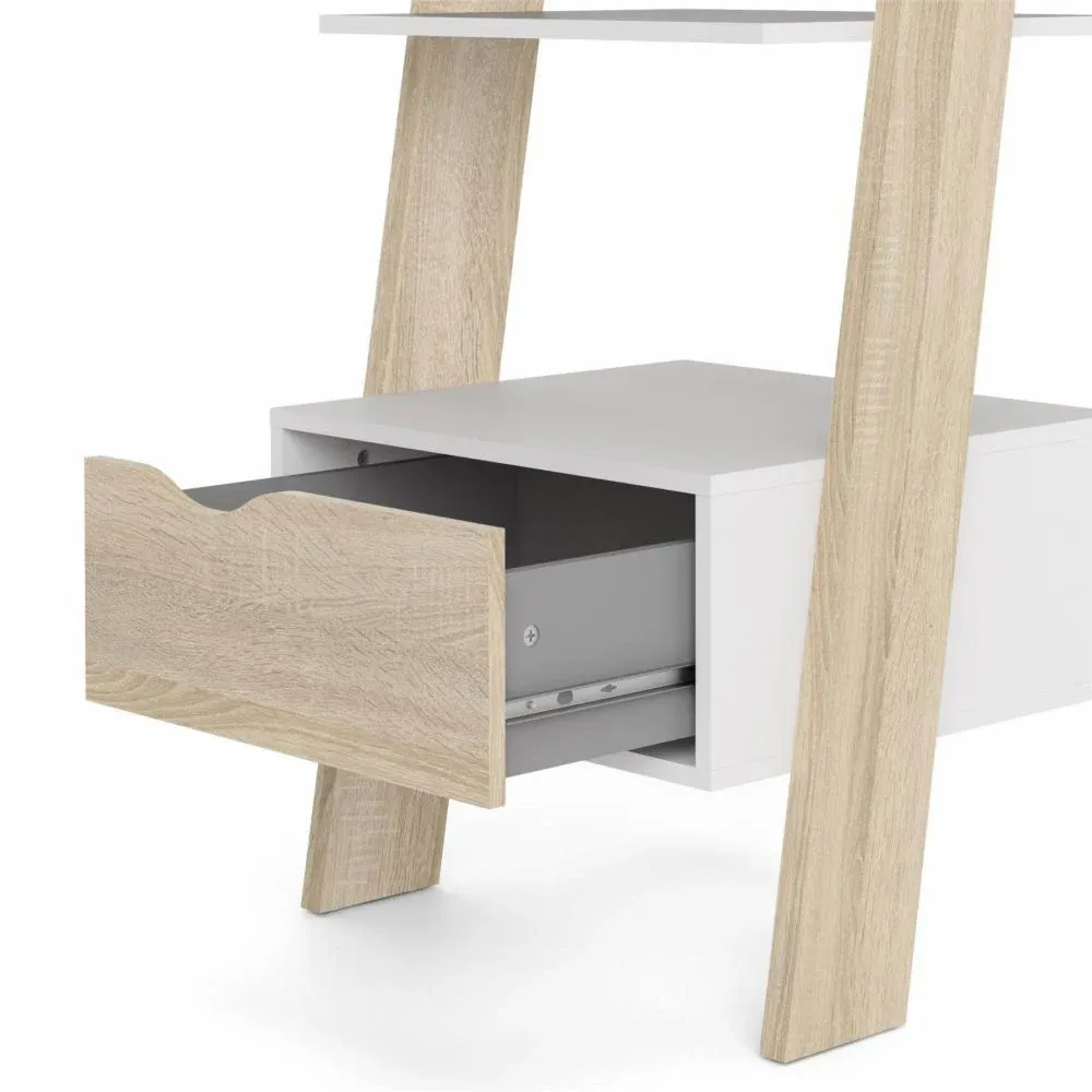 Elegante libreria salvaspazio colore Bianco e Rovere. La libreria è composta da quattro ripiani e da un cassetto utili per riporre i propri oggetti o i vari documenti. La libreria è disponibile anche in Nero e Bianco.