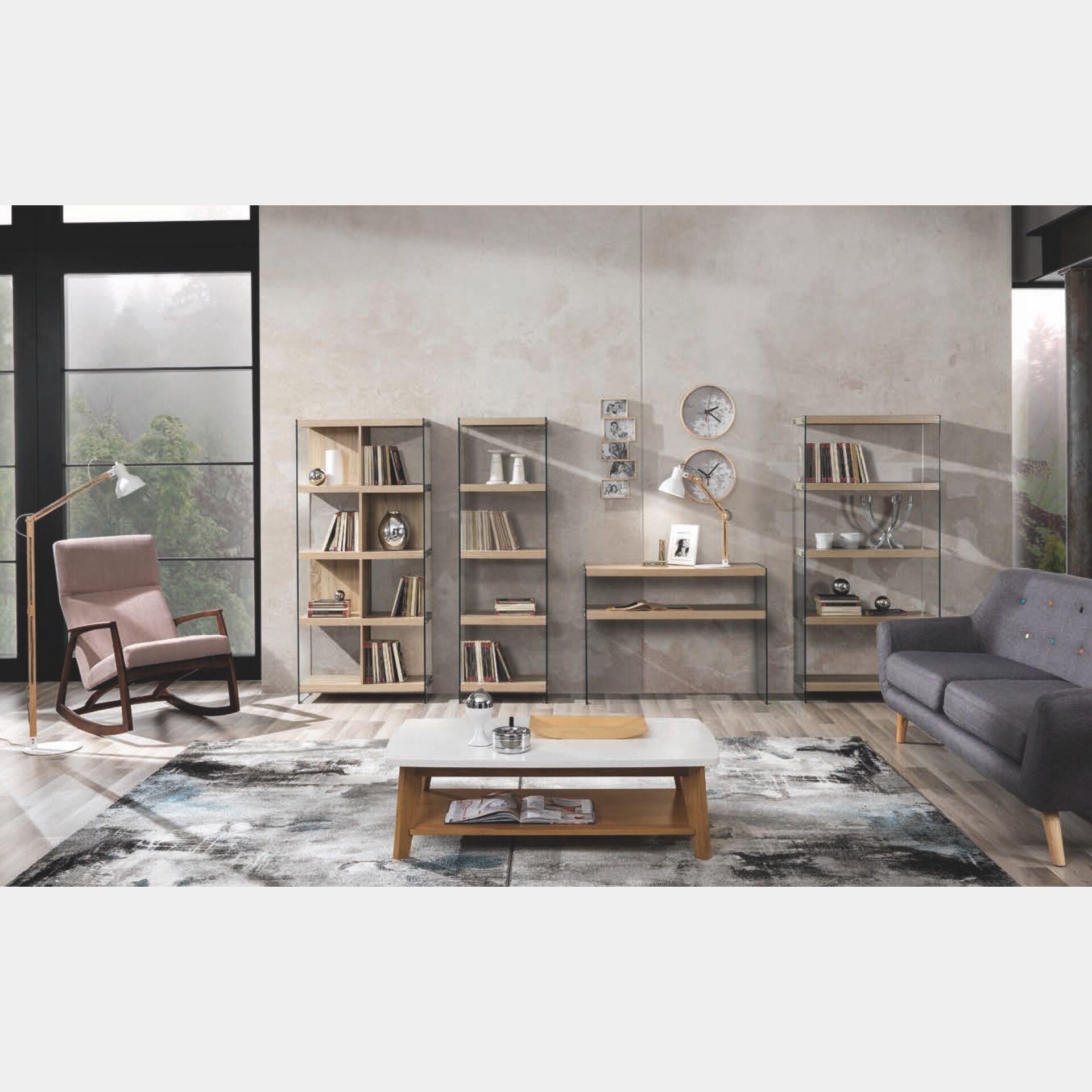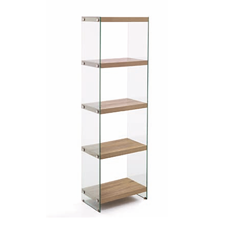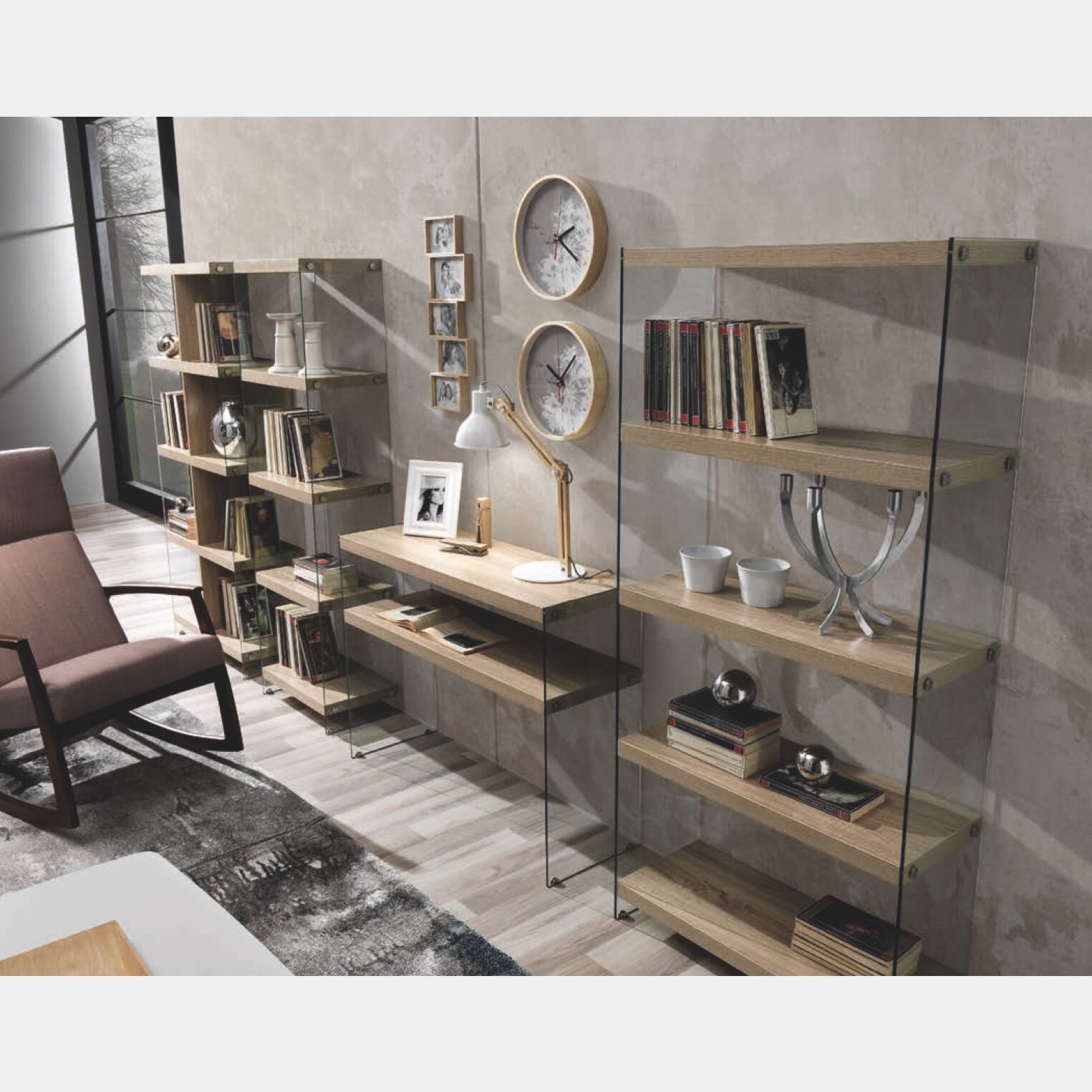 I 5 solidi ripiani assicurano un piano di appoggio per libri, documenti, souvenier ed oggetti vari, al contempo i fianchi eleganti in vetro temperato donano un tocco moderno e personale, capace di arredare la stanza donando armonia e calore. La libreria si adatta facilmente a più contesti e stili grazie a linee pulite e moderne, a disposizione vi sono altre dimensioni.