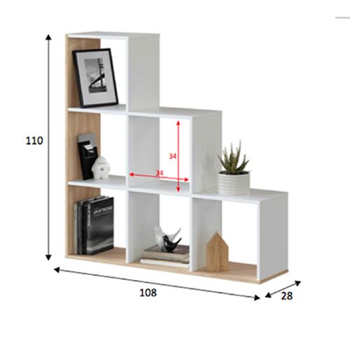 Librerie divisoria a scala, finitura Bianco artik e Rovere canadian