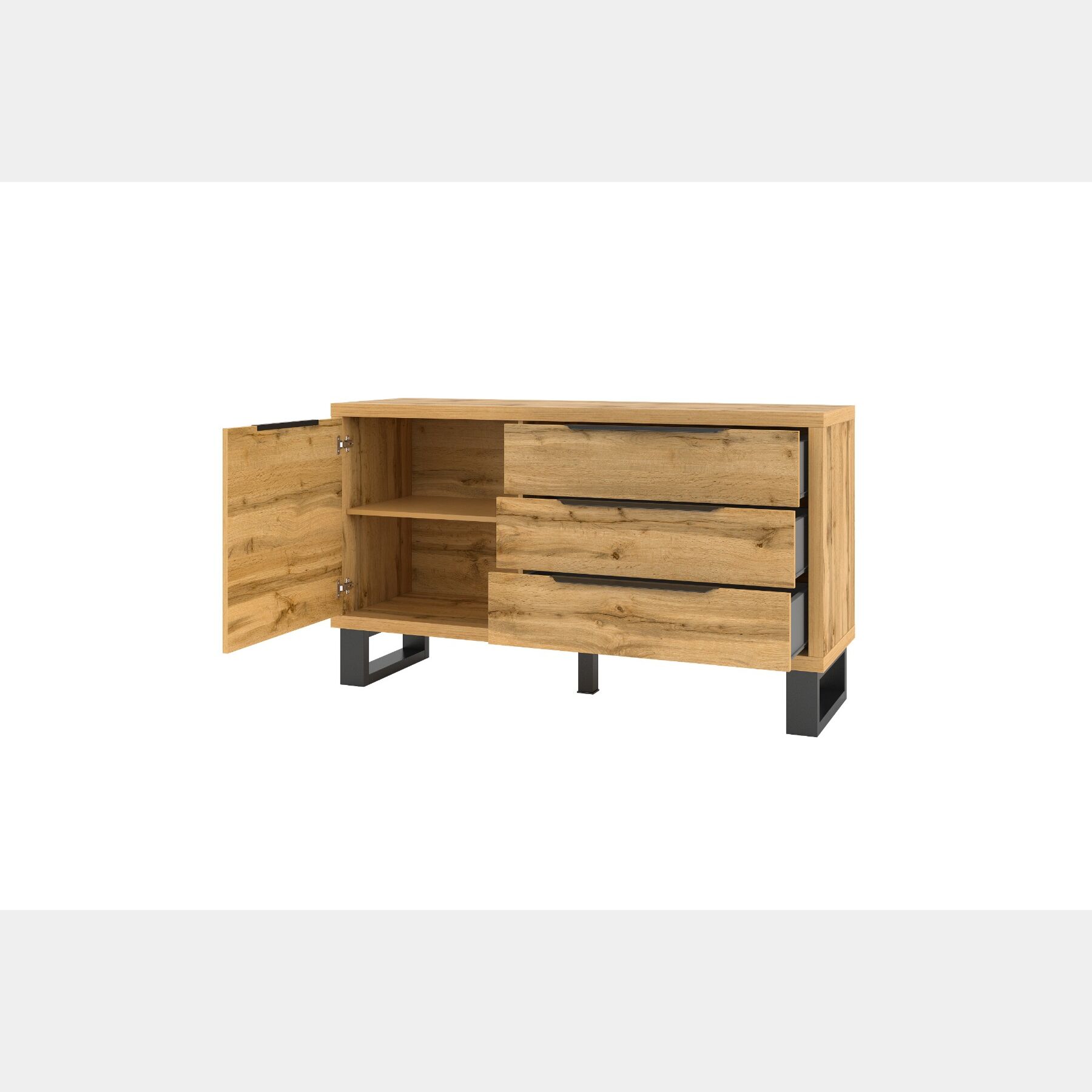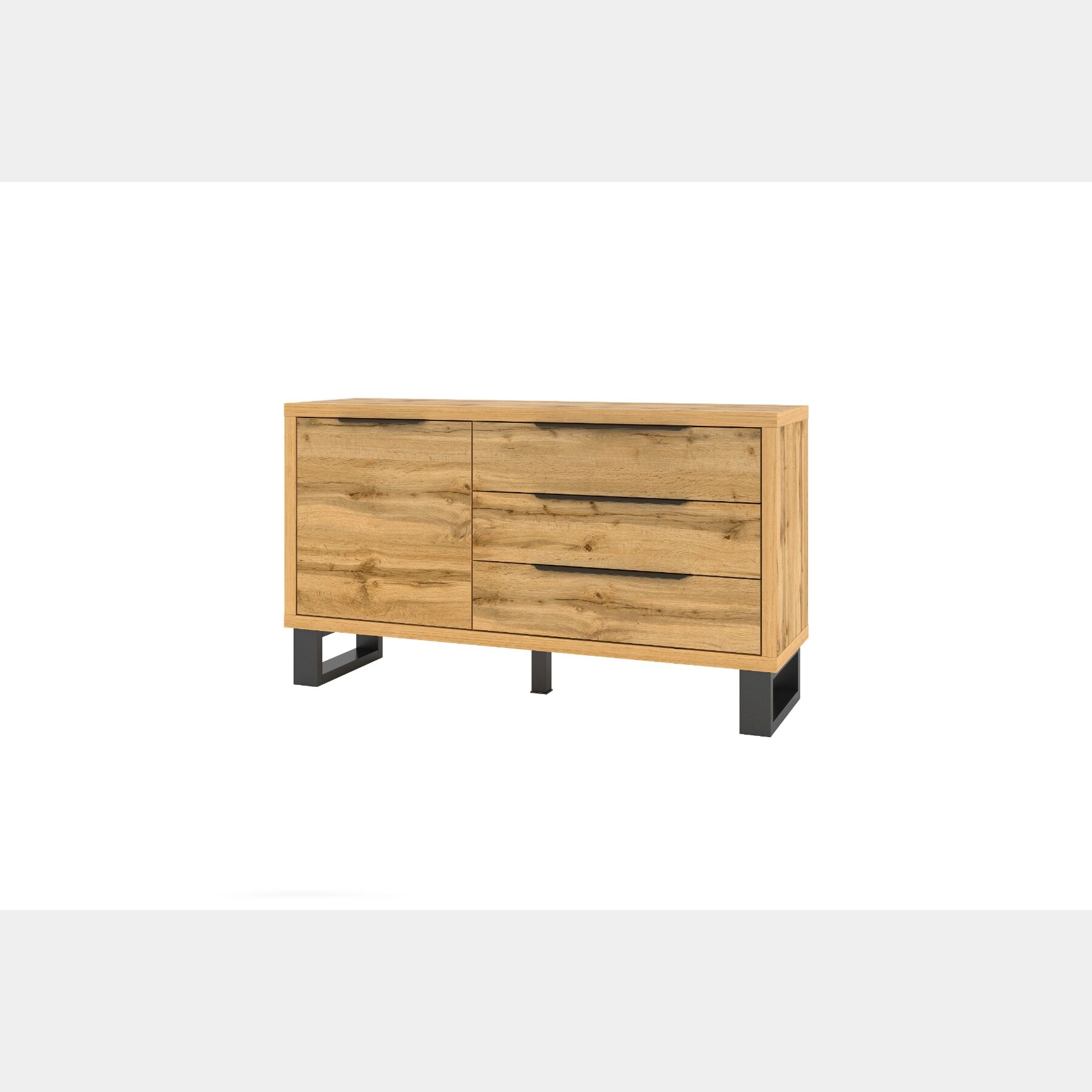 Madia 1 anta e 3 cassetti, finitura quercia e metallo nero