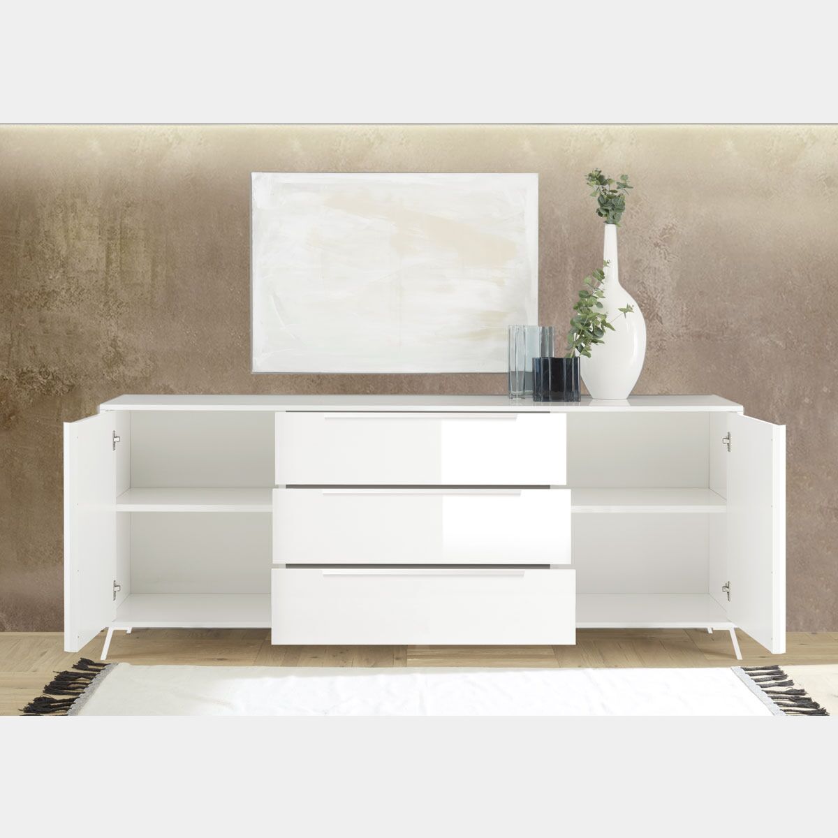 Madia moderna 2 ante 3 cassetti in finitura Bianco Laccato Lucido