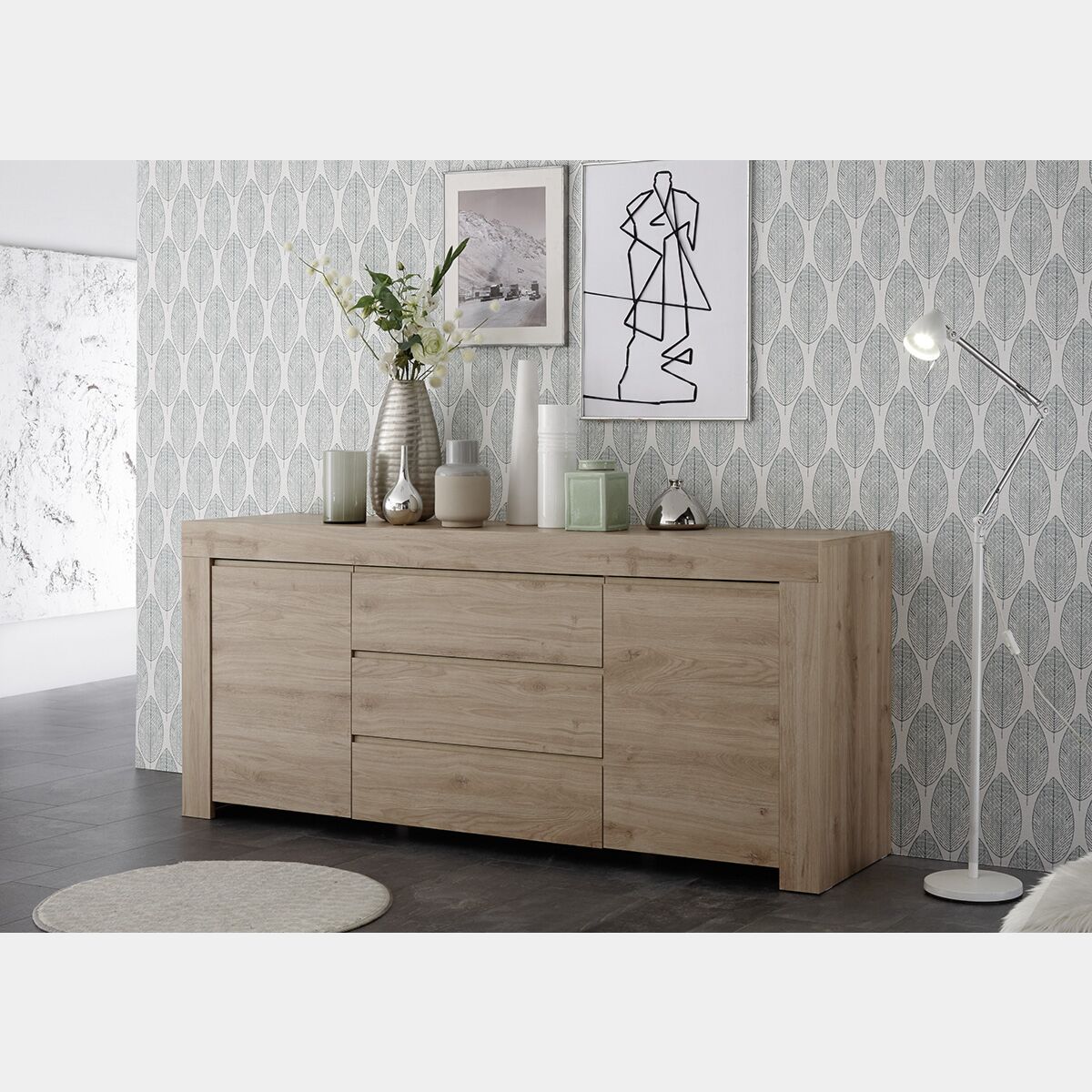 Madia 2 ante 3 cassetti, finitura Rovere Cadiz con maniglia a gola