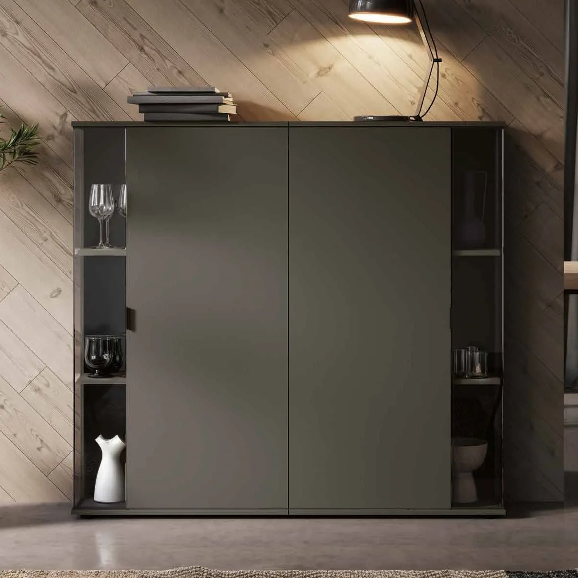 Madia 2 ante con vetro fumè, 160x35x145 h cm, Grigio cenere, collezione Easy
