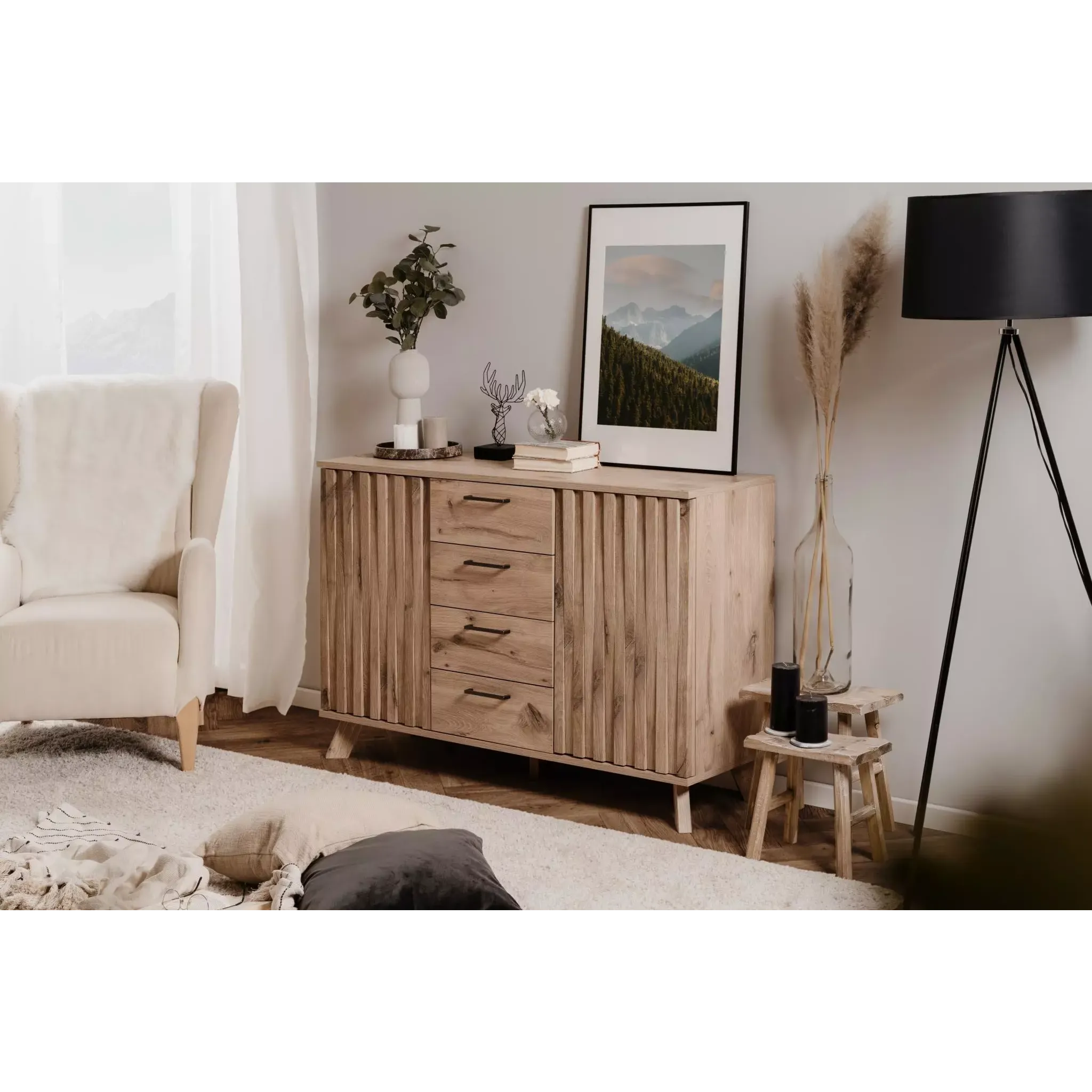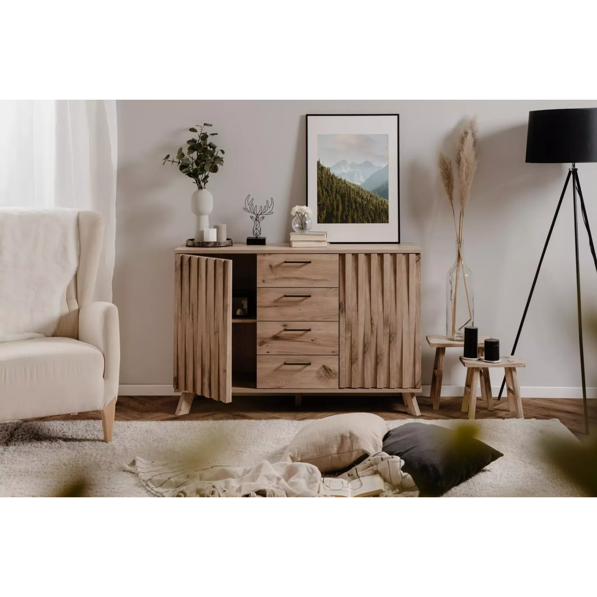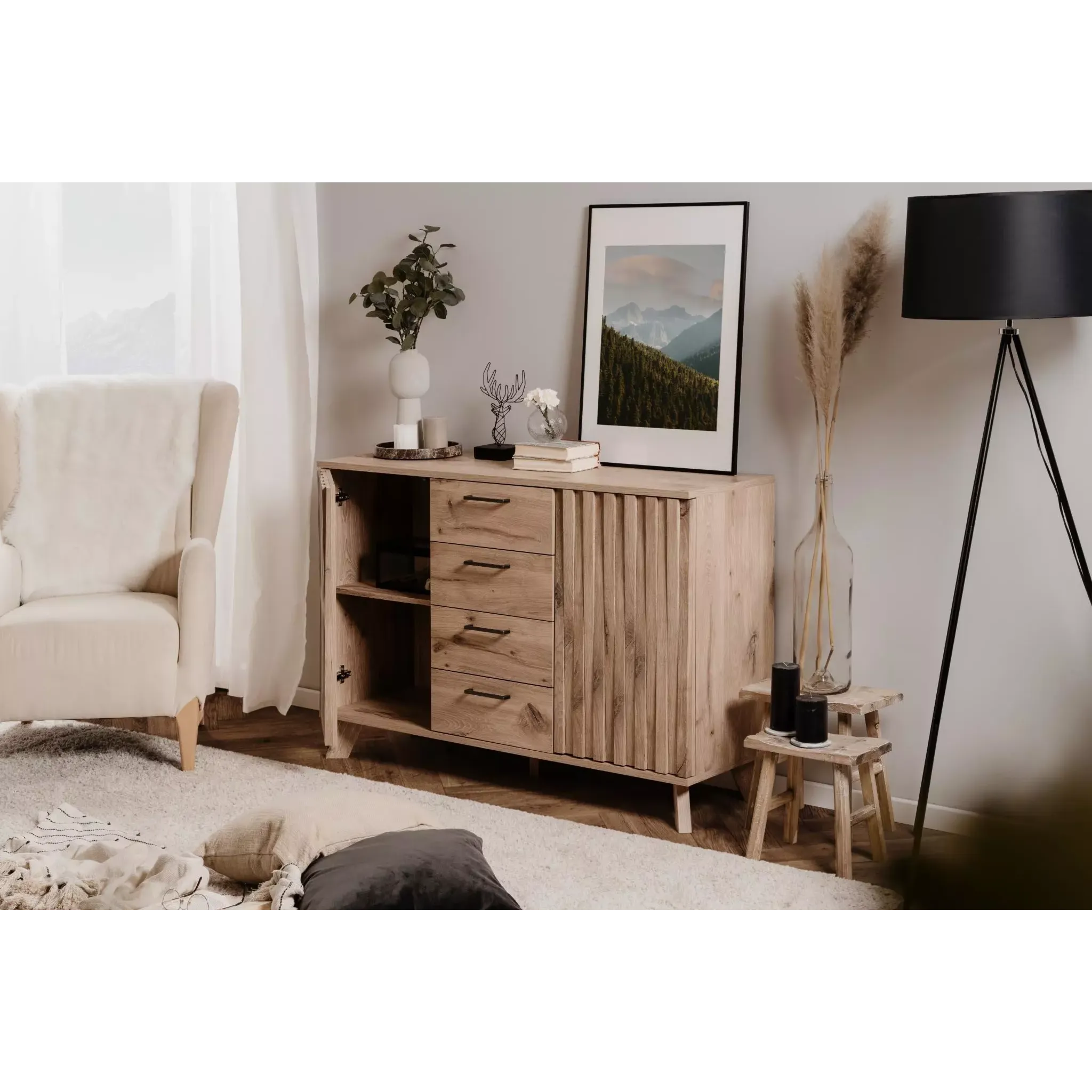 Accogliente e funzionale, la collezione è composta da diversi mobili dallo stile nordico, quest'ultimo articolo saprà riscaldare la tua casa grazie al design unico che lo caratterizza.
