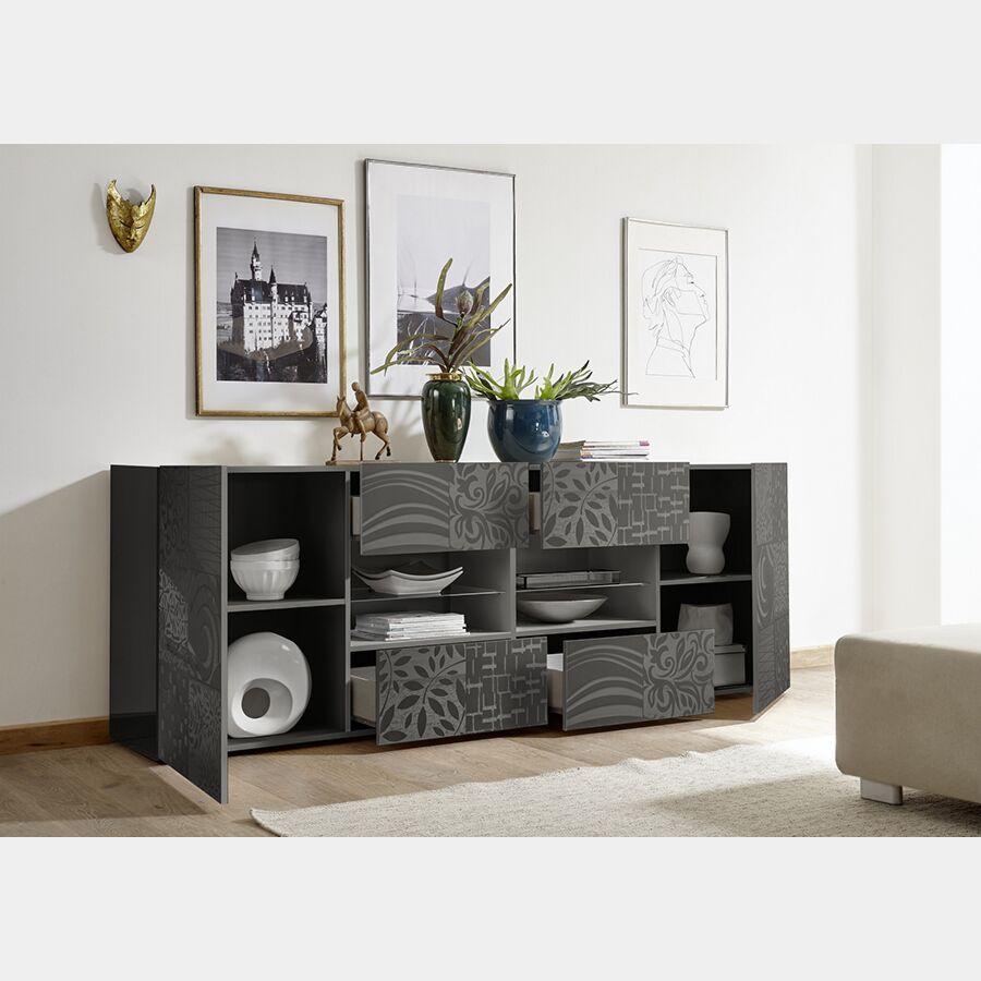 Madia 2 ante 4 cassetti in finitura grigio serigrafato.