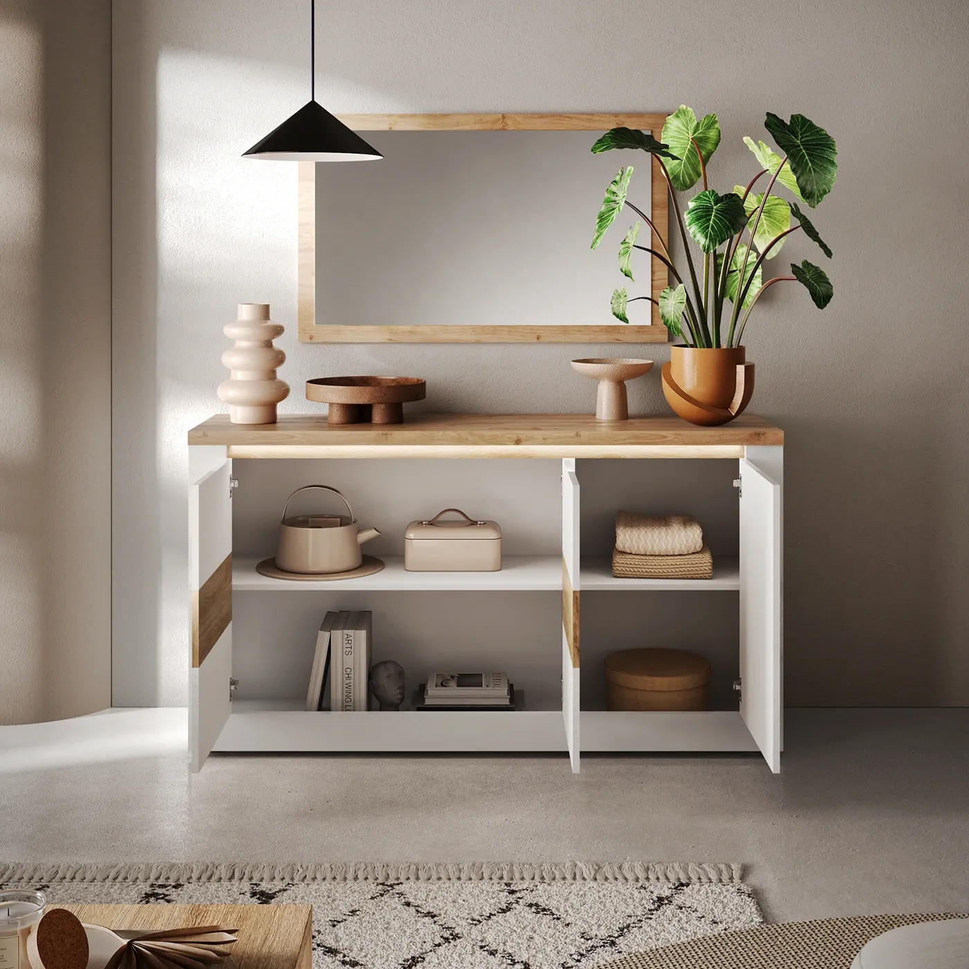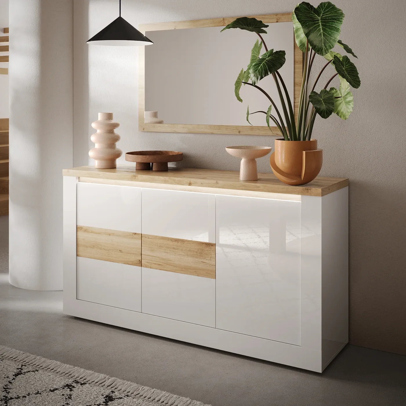 Madia 3 ante, 156x84x53 h cm, Bianco lucido e Cadiz